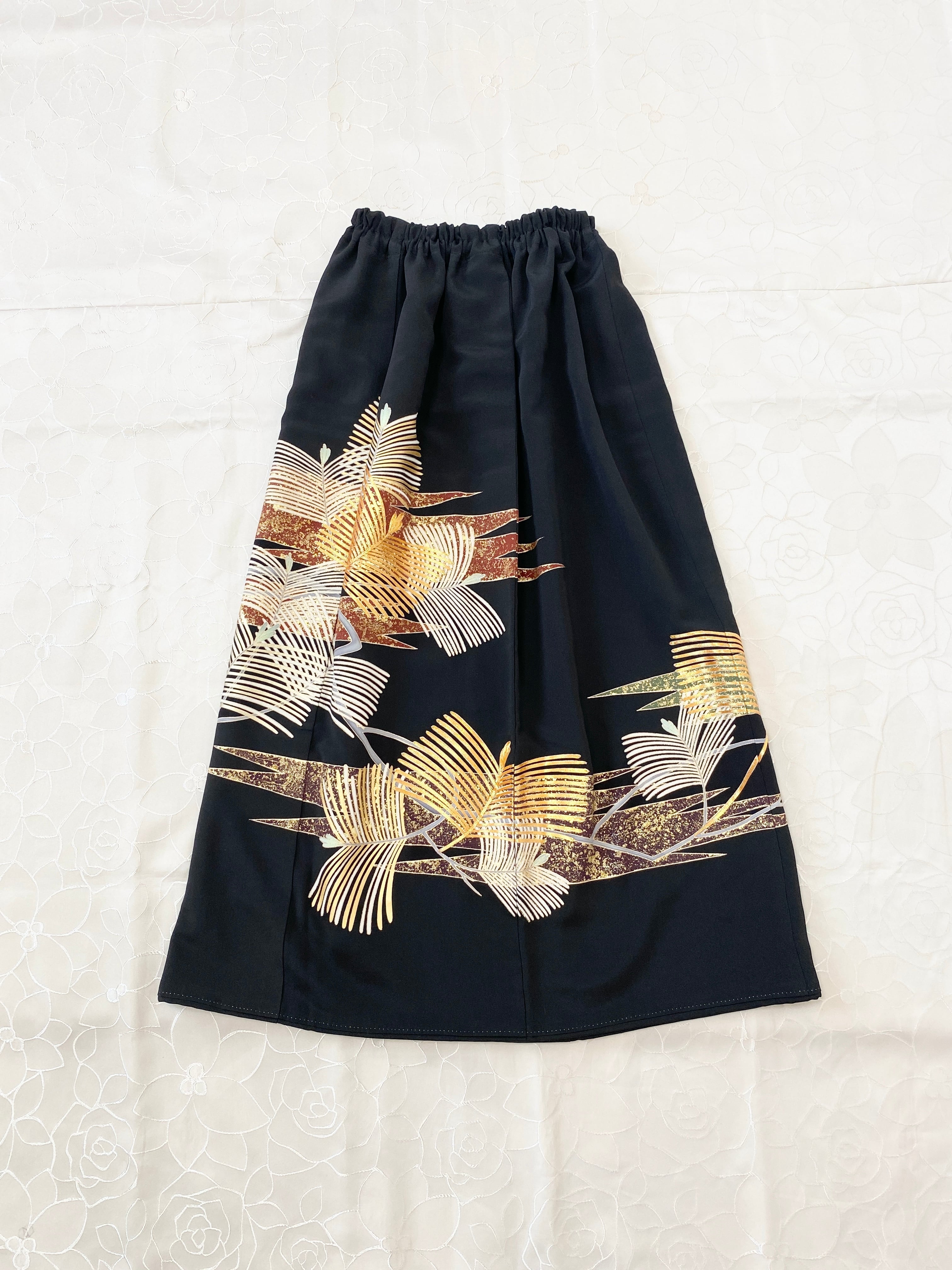 黒留袖着物をリメイクして作製したウエストゴムギャザードレススカートフリーサイズ【超ロング丈】です。
