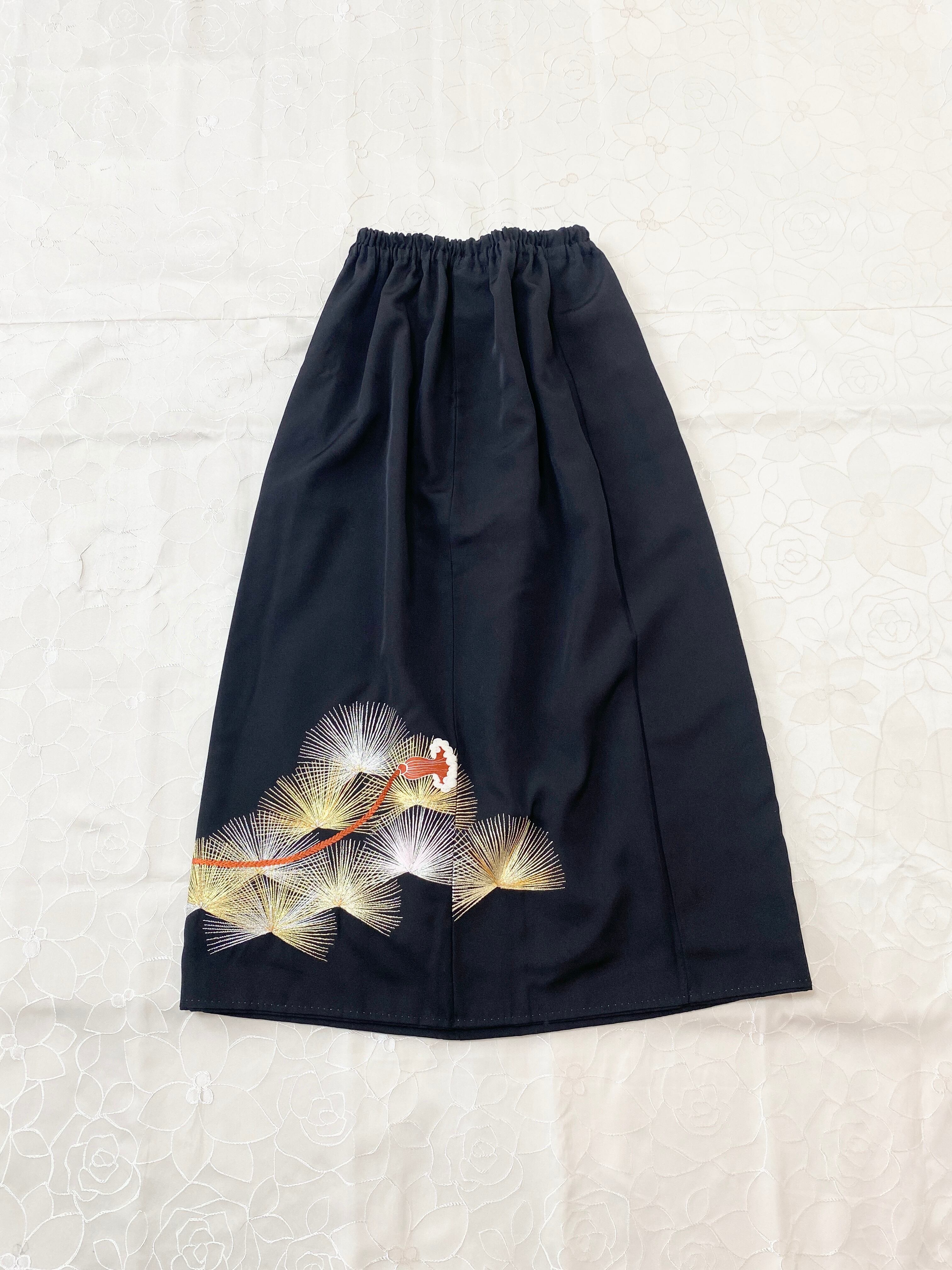 黒留袖着物をリメイクして作製したウエストゴムギャザードレススカートフリーサイズ【超ロング丈】です。
