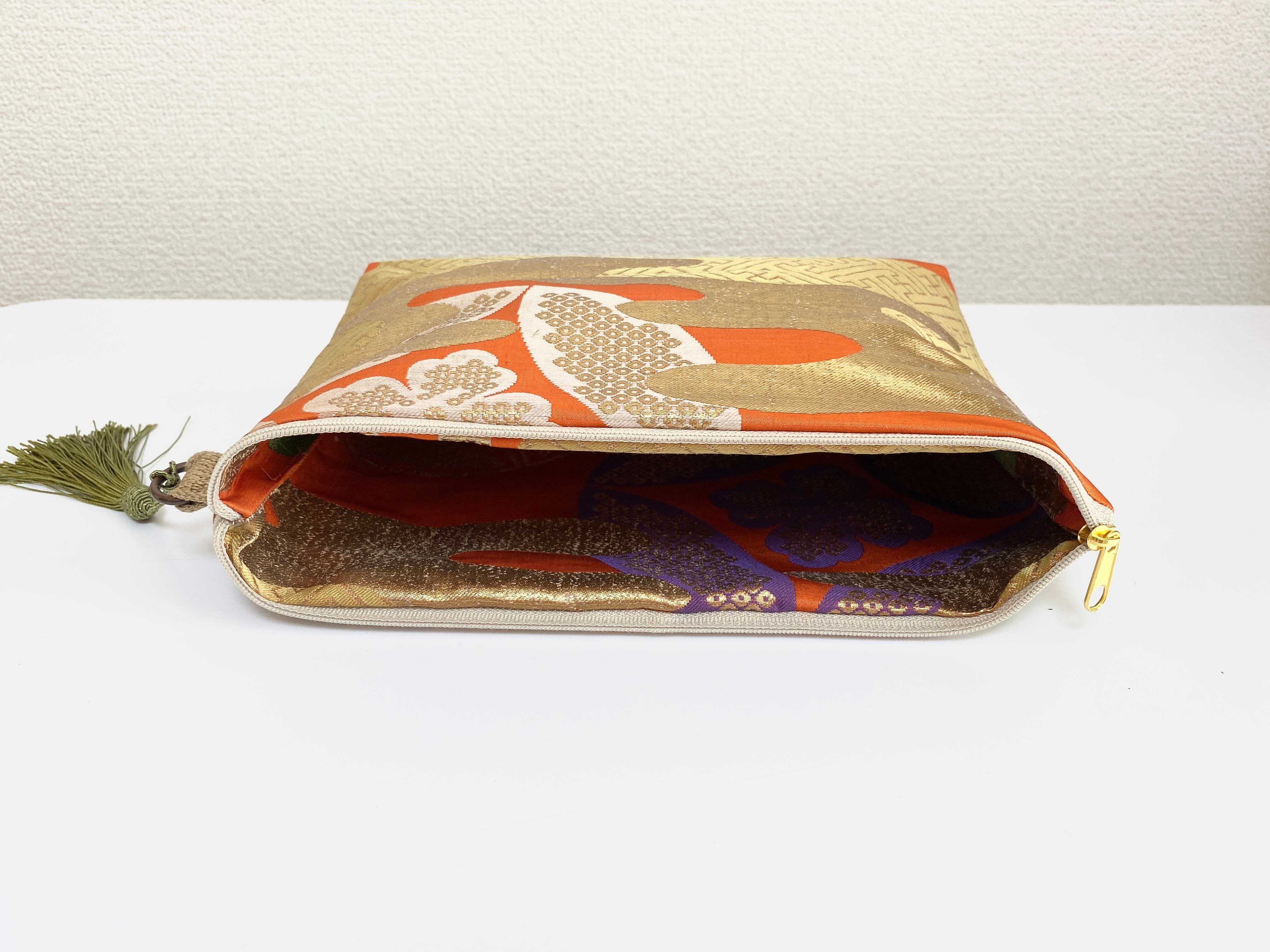 裏生地にも帯を使用しておりますのでしっかりとした造りの帯リメイクポーチ【大きめ】です。