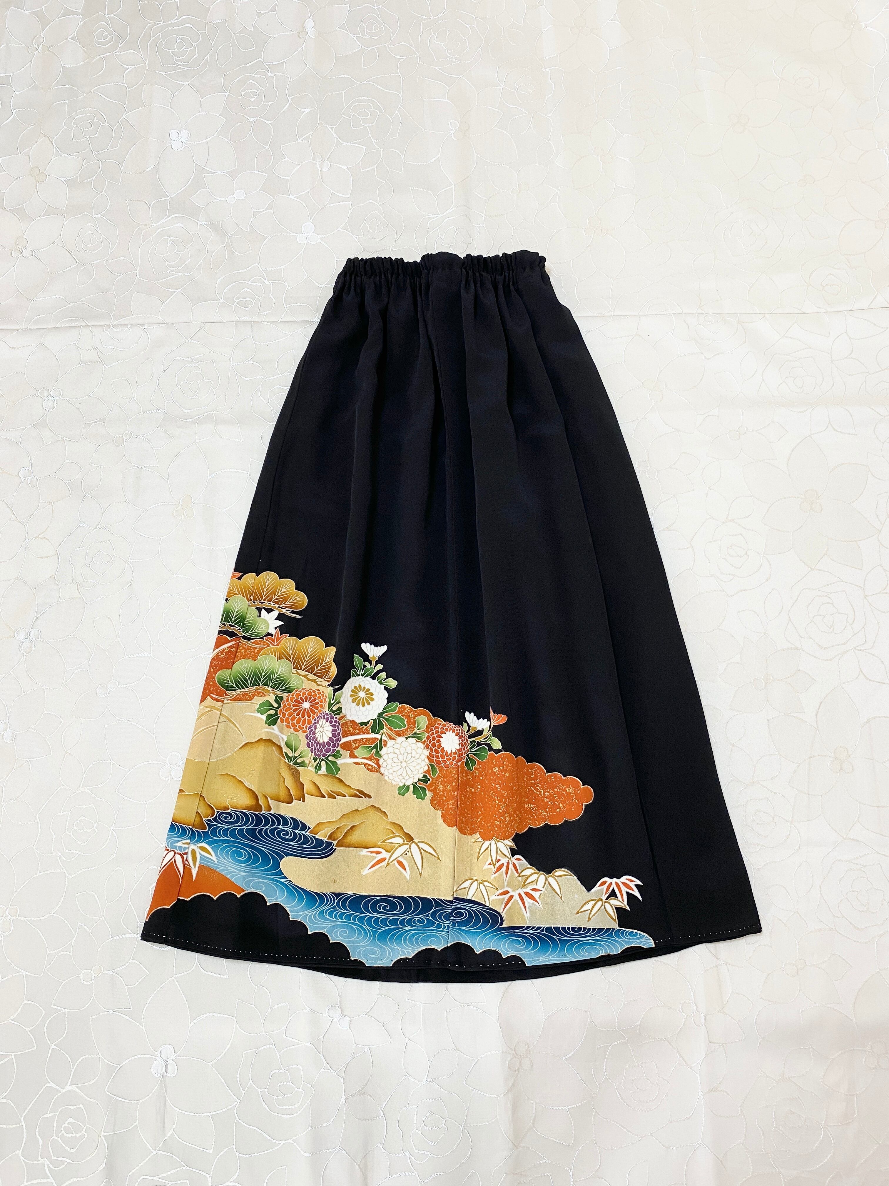 黒留袖着物リメイクウエストゴムロングスカート送料無料フリーサイズ1点物黒留袖着物リメイクウエストゴムロングスカートハンドメイド黒留袖着物リメイクロングスカート1点物NO.901