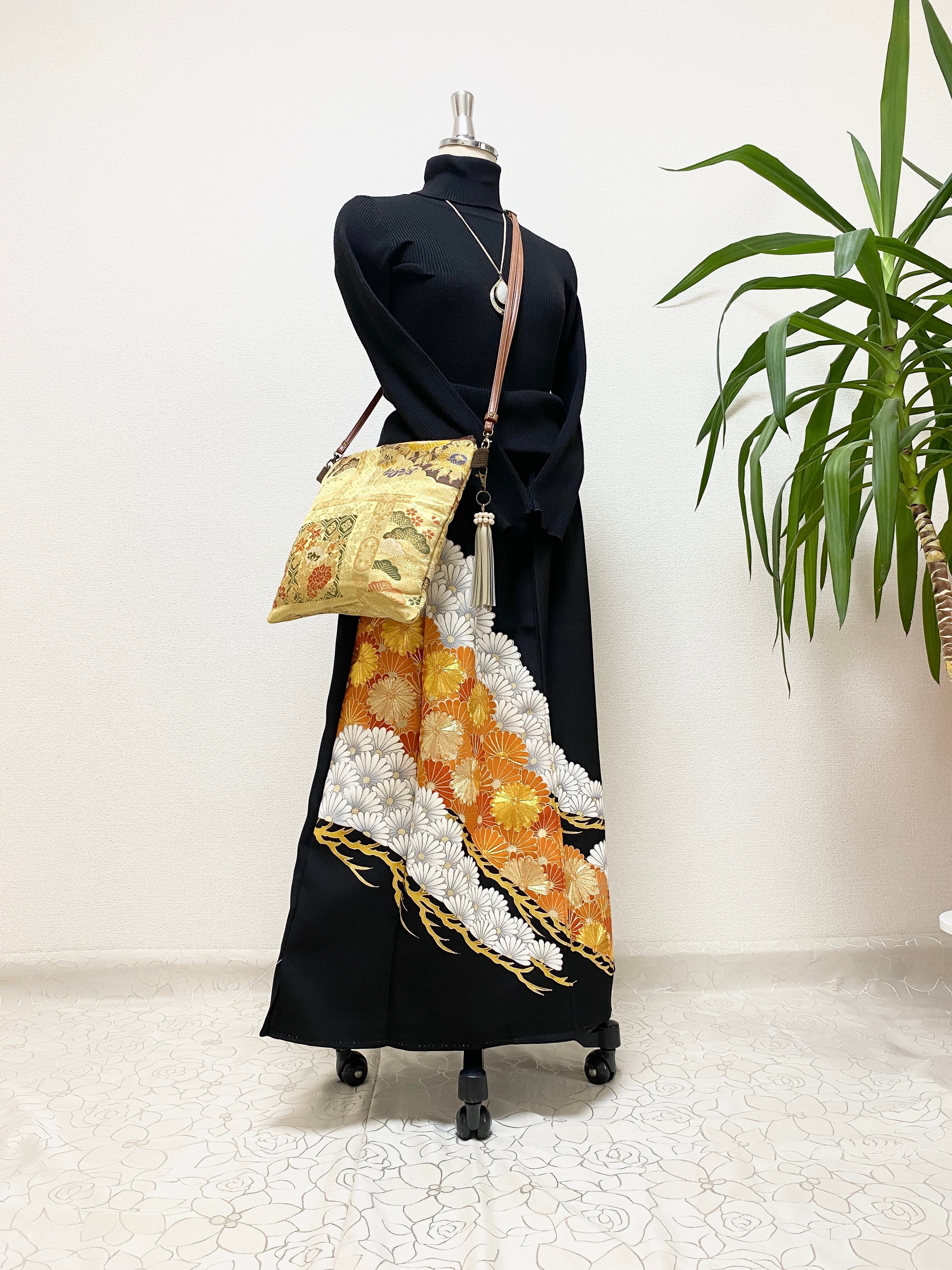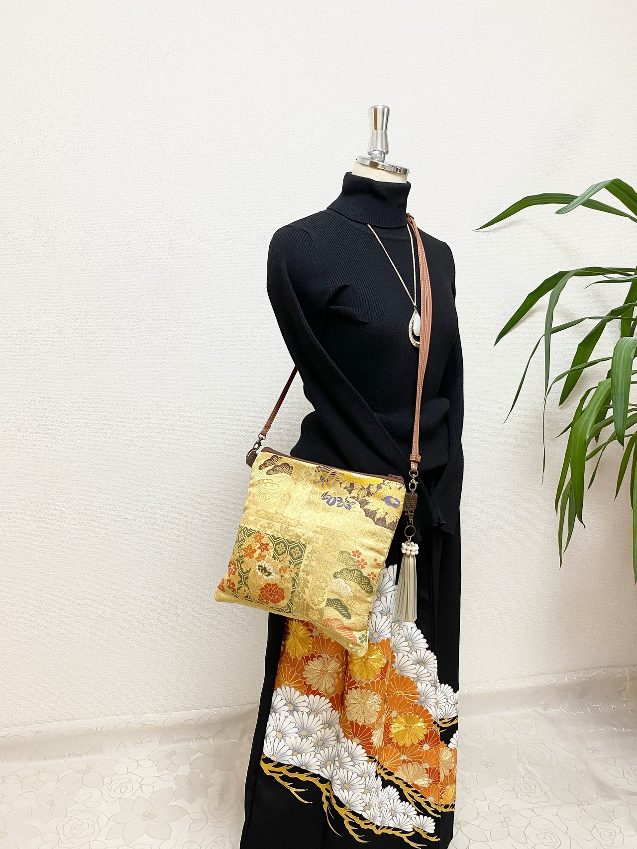 日本の古帯をリメイクして作成したサコッシュでハンドメイド品です。