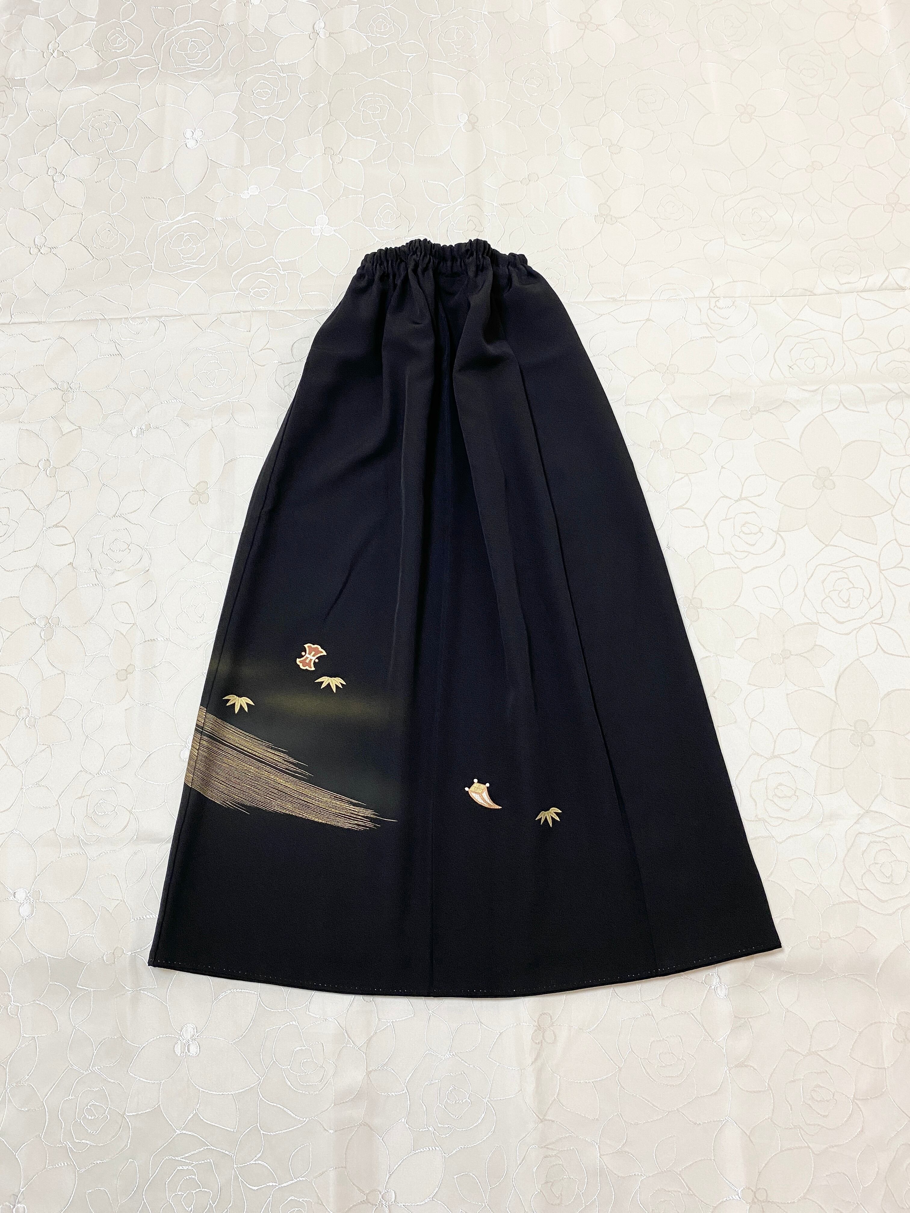 黒留袖着物リメイクウエストゴムロングスカート送料無料フリーサイズ1点物黒留袖着物リメイクウエストゴムロングスカートハンドメイド黒留袖着物リメイクロングスカート1点物NO.930