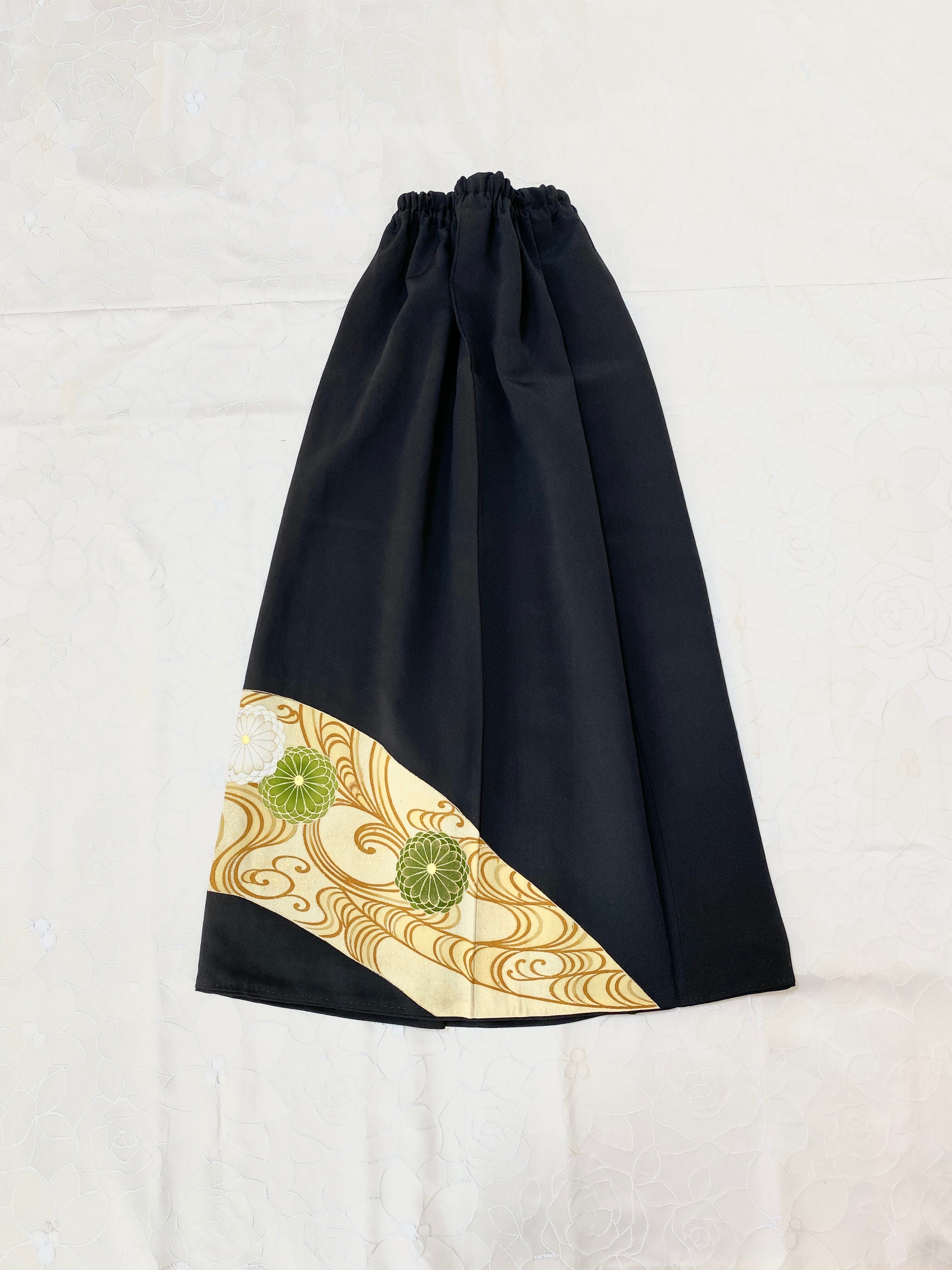 黒留袖着物をリメイクして作製したウエストゴムロングドレススカートフリーサイズ【超ロング丈】です。