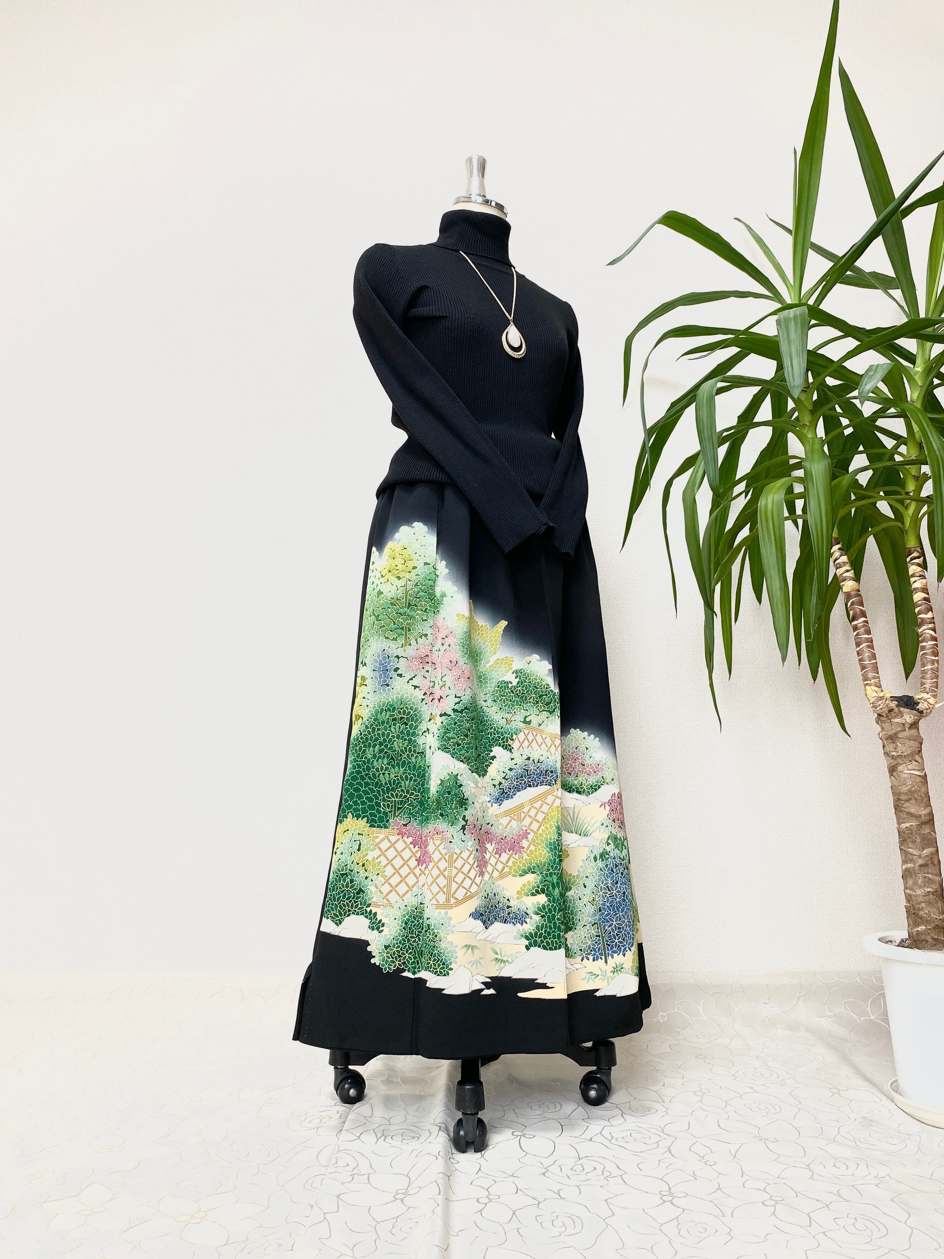黒留袖着物リメイクウエストゴムロングスカート送料無料フリーサイズ1点物黒留袖着物リメイクウエストゴムロングスカートハンドメイド黒留袖着物リメイクロングスカート1点物NO.947