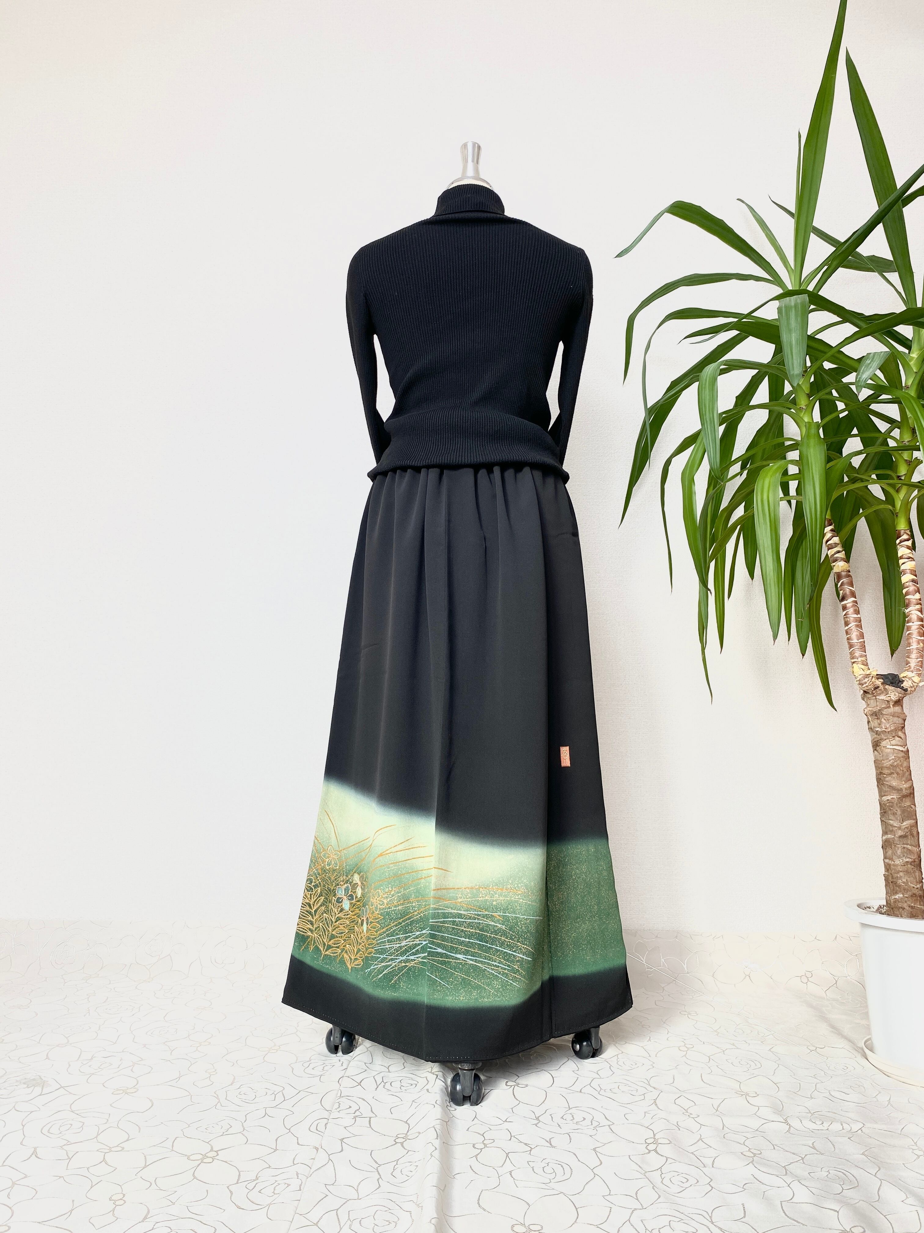 黒留袖着物リメイクウエストゴムロングドレススカートフリーサイズ【超ロング丈】