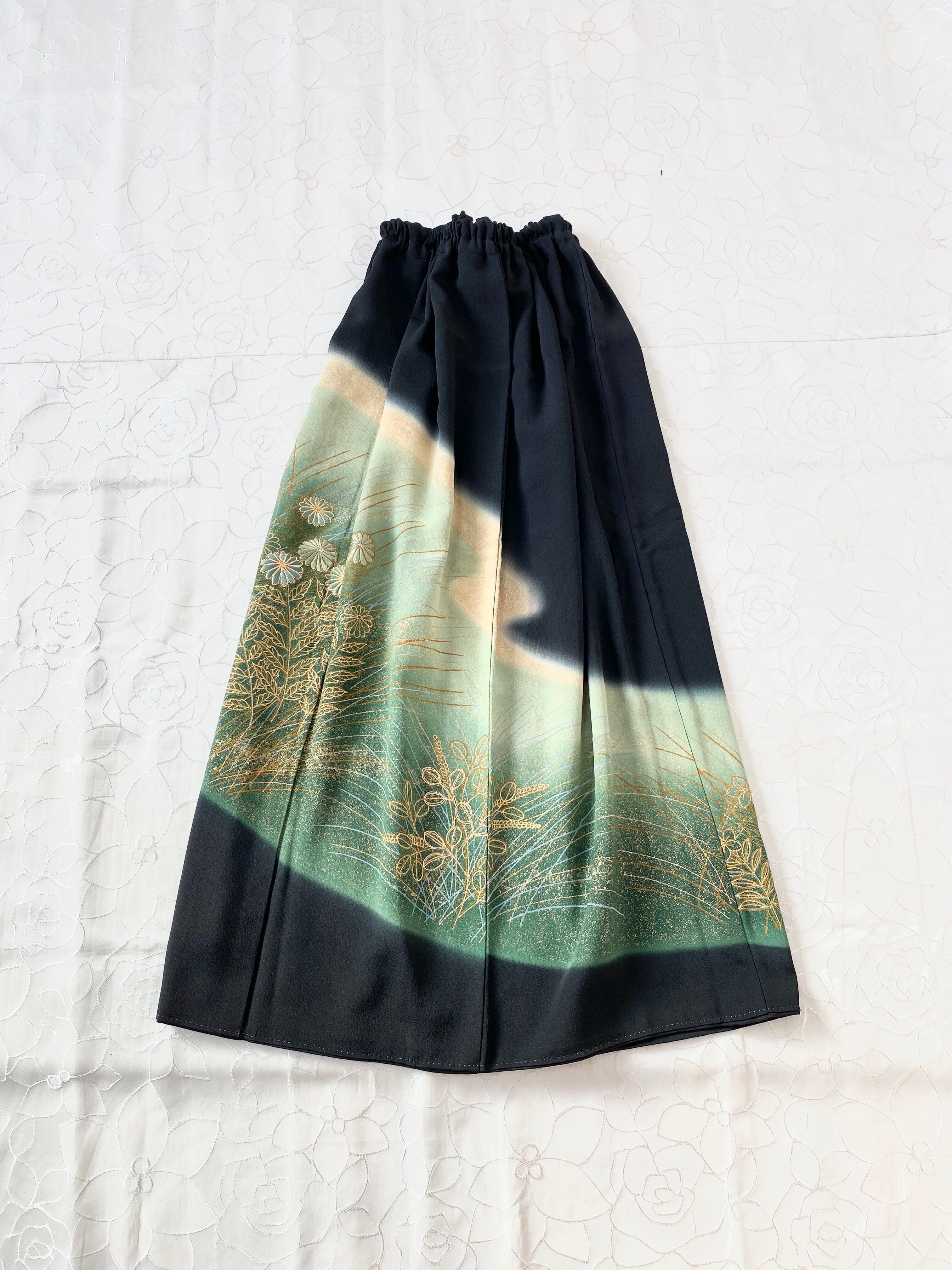 黒留袖着物をリメイクして作製したウエストゴムロングドレススカートフリーサイズ【超ロング丈】です。