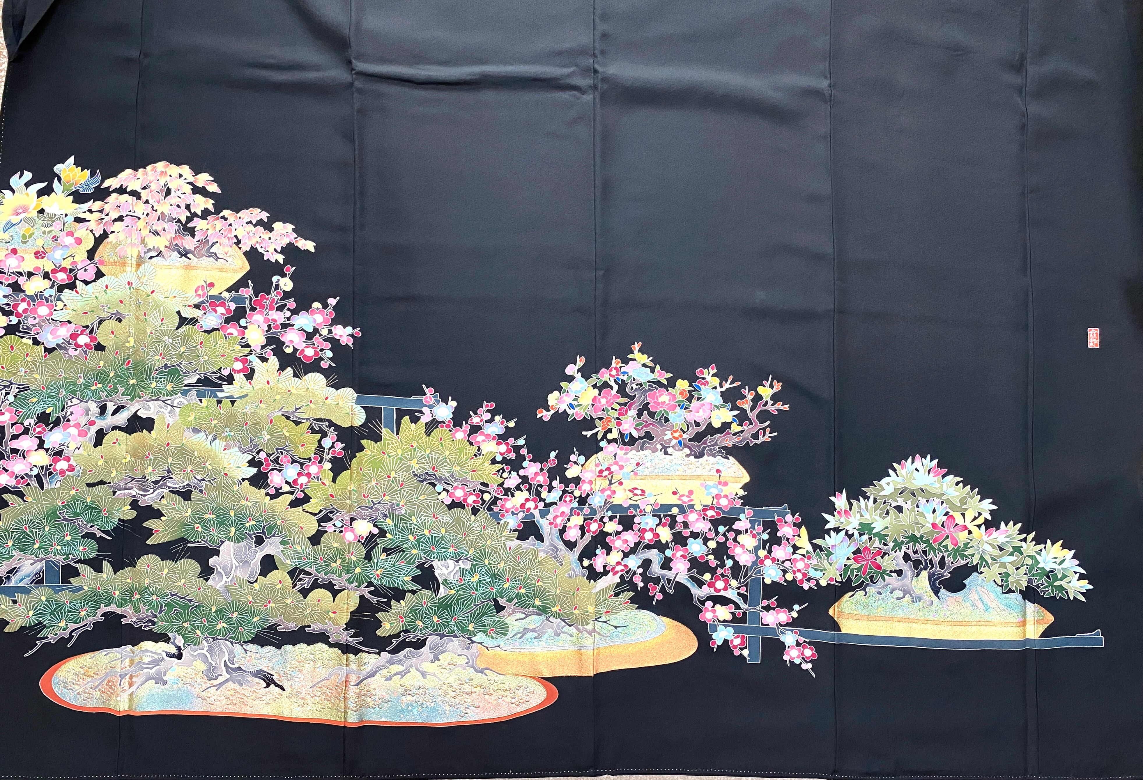 黒留袖着物リメイクウエストゴムロングスカート送料無料フリーサイズ1点物黒留袖着物リメイクウエストゴムロングスカートハンドメイド黒留袖着物リメイクロングスカート1点物NO.978