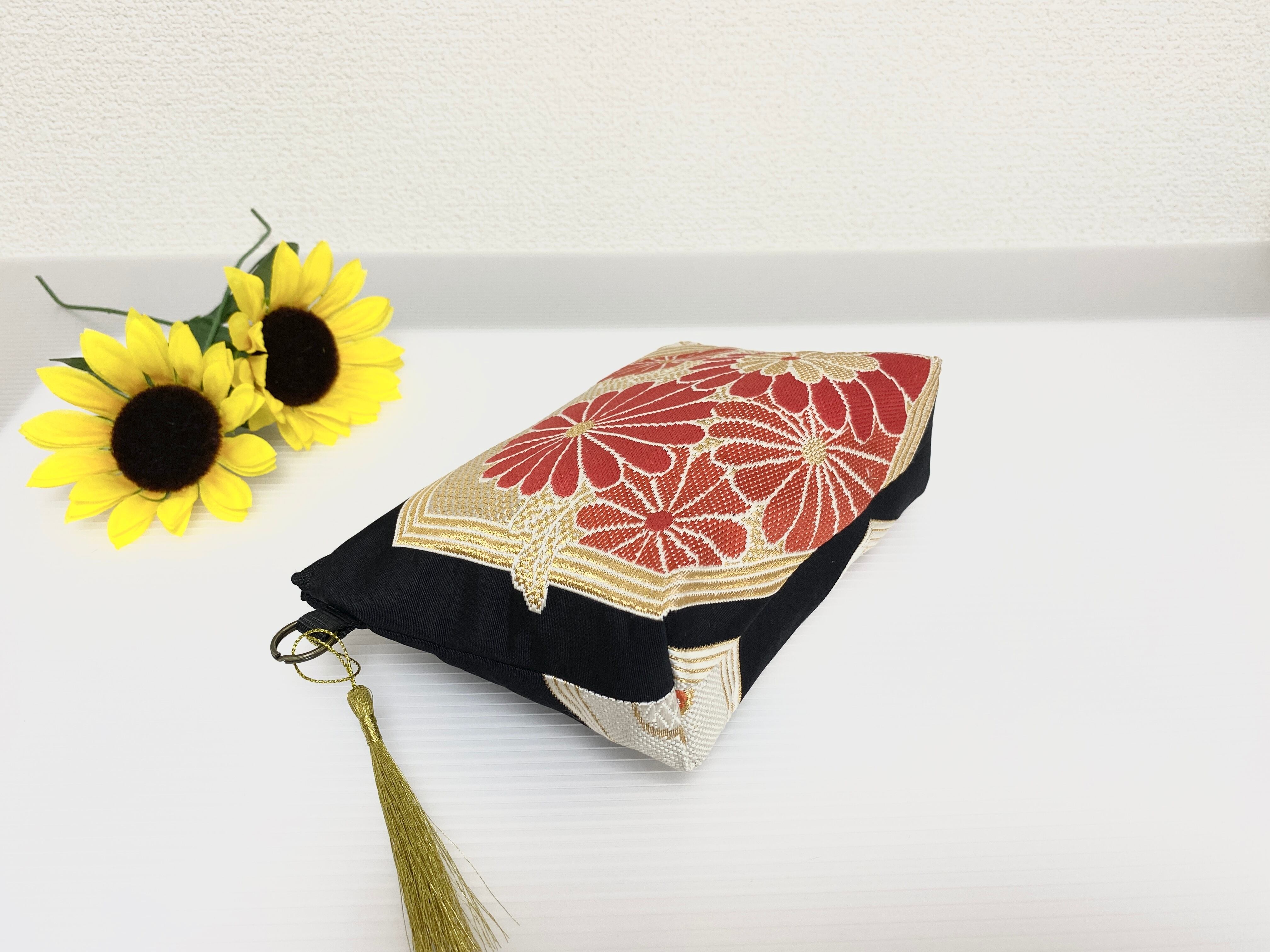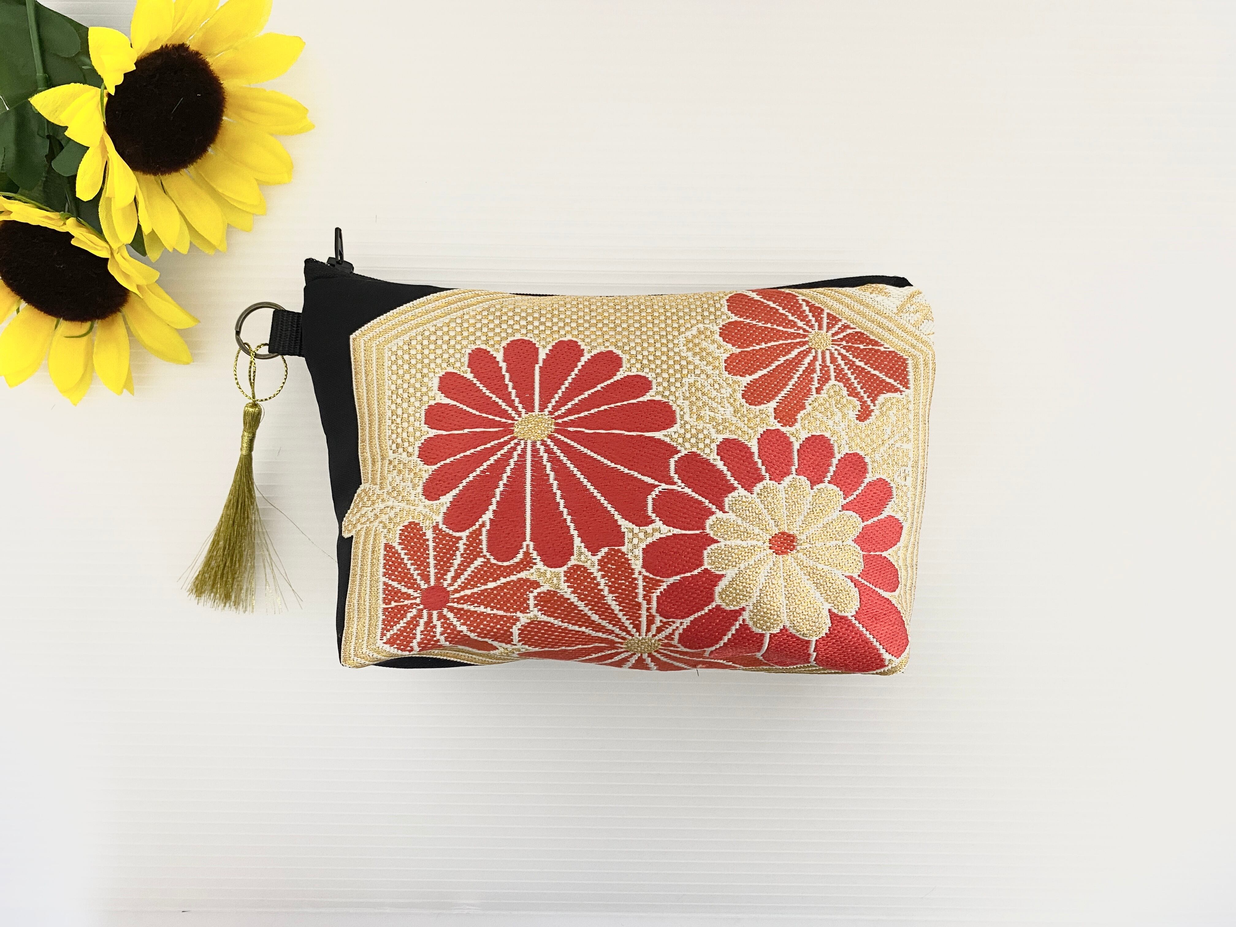 日本の古正絹帯を再利用リメイクして作製したポーチでハンドメイド品です。