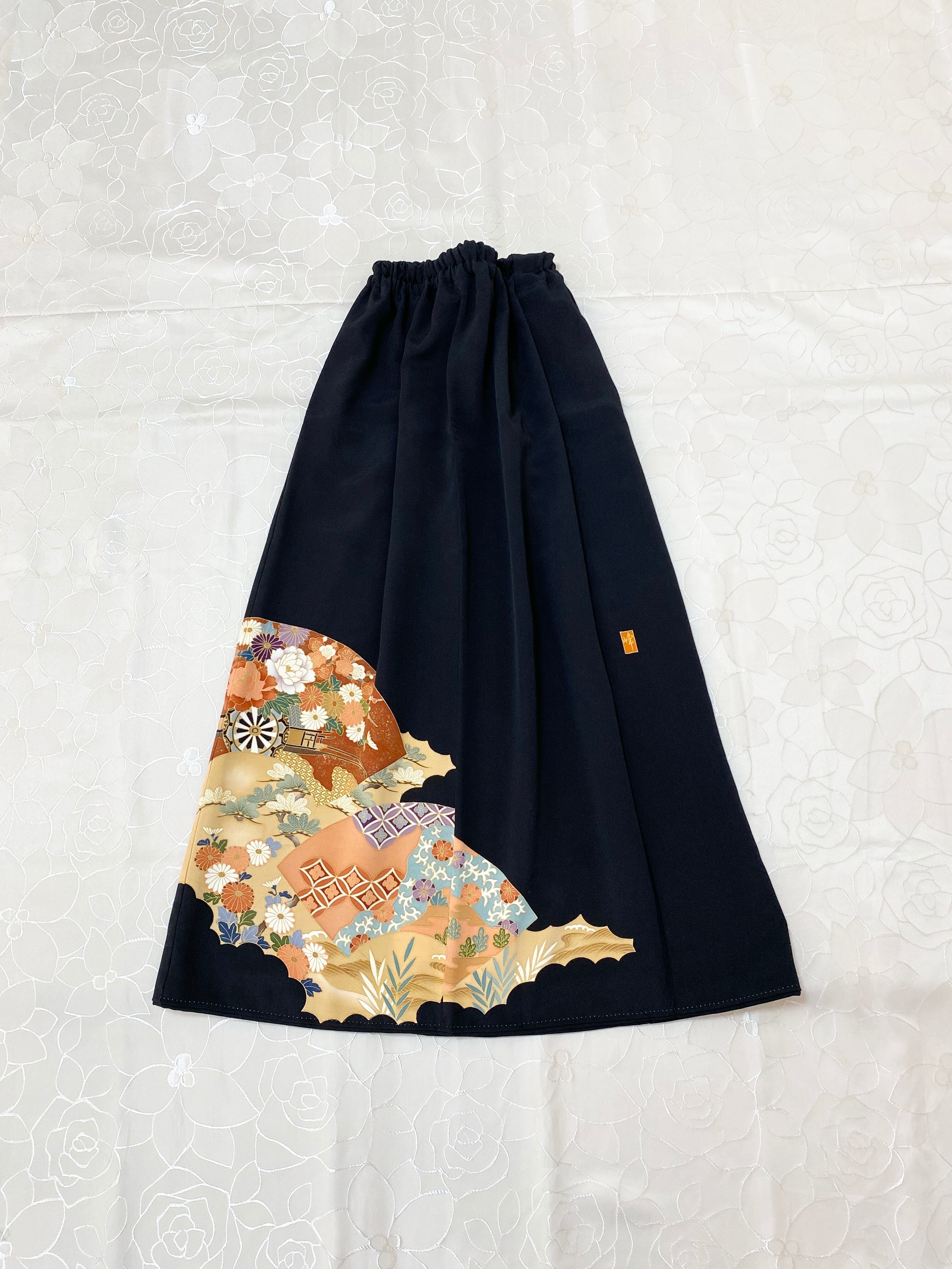 黒留袖着物リメイクウエストゴムロングスカートフリーサイズ