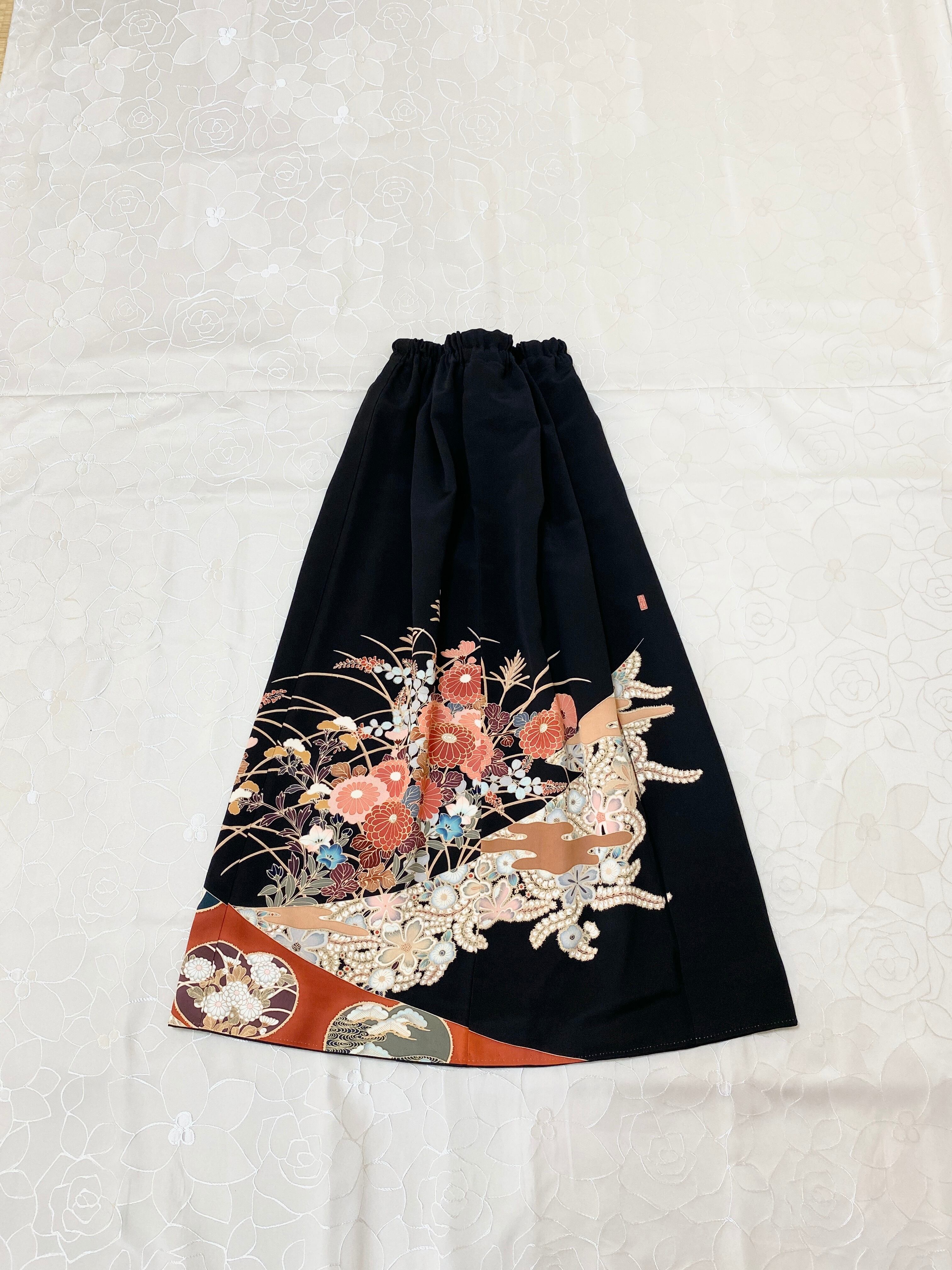 黒留袖着物リメイクウエストゴムロングスカートフリーサイズ