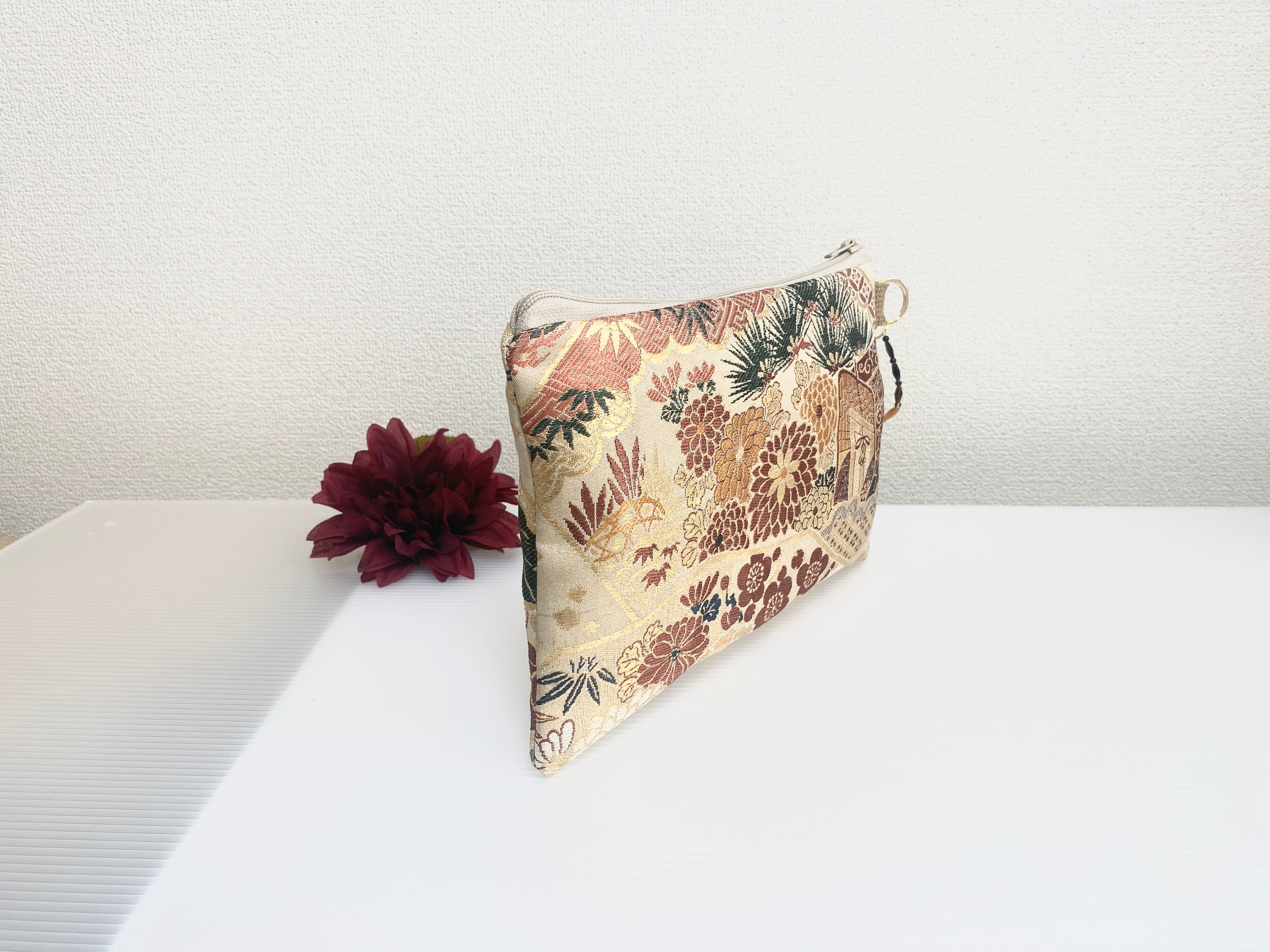 日本の古帯を再利用リメイクして作製したポーチでハンドメイド品です。