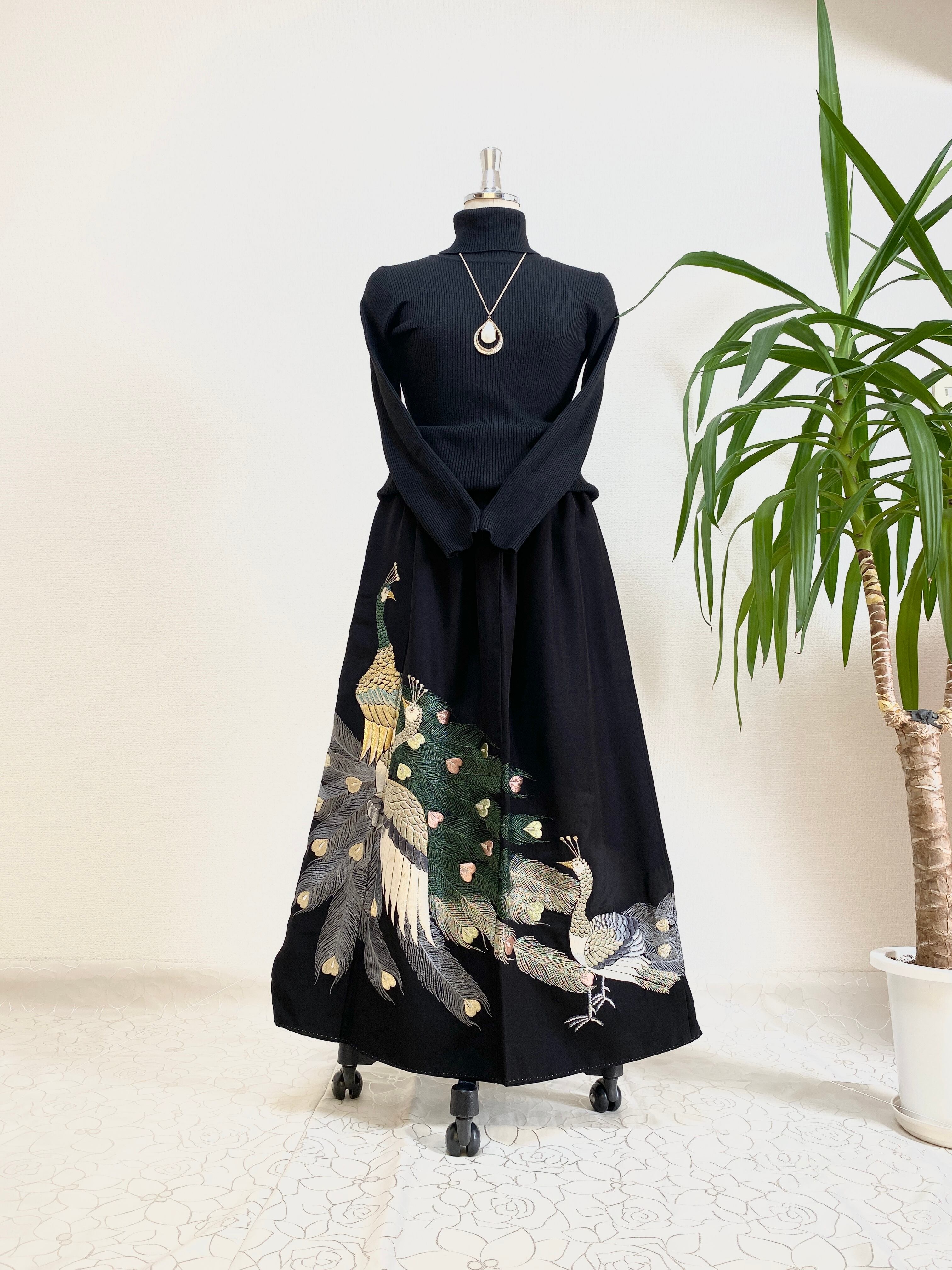 黒留袖着物リメイクウエストゴムロングスカート送料無料フリーサイズ1点物黒留袖着物リメイクウエストゴムロングスカートハンドメイド黒留袖着物リメイクロングスカート1点物NO.1021