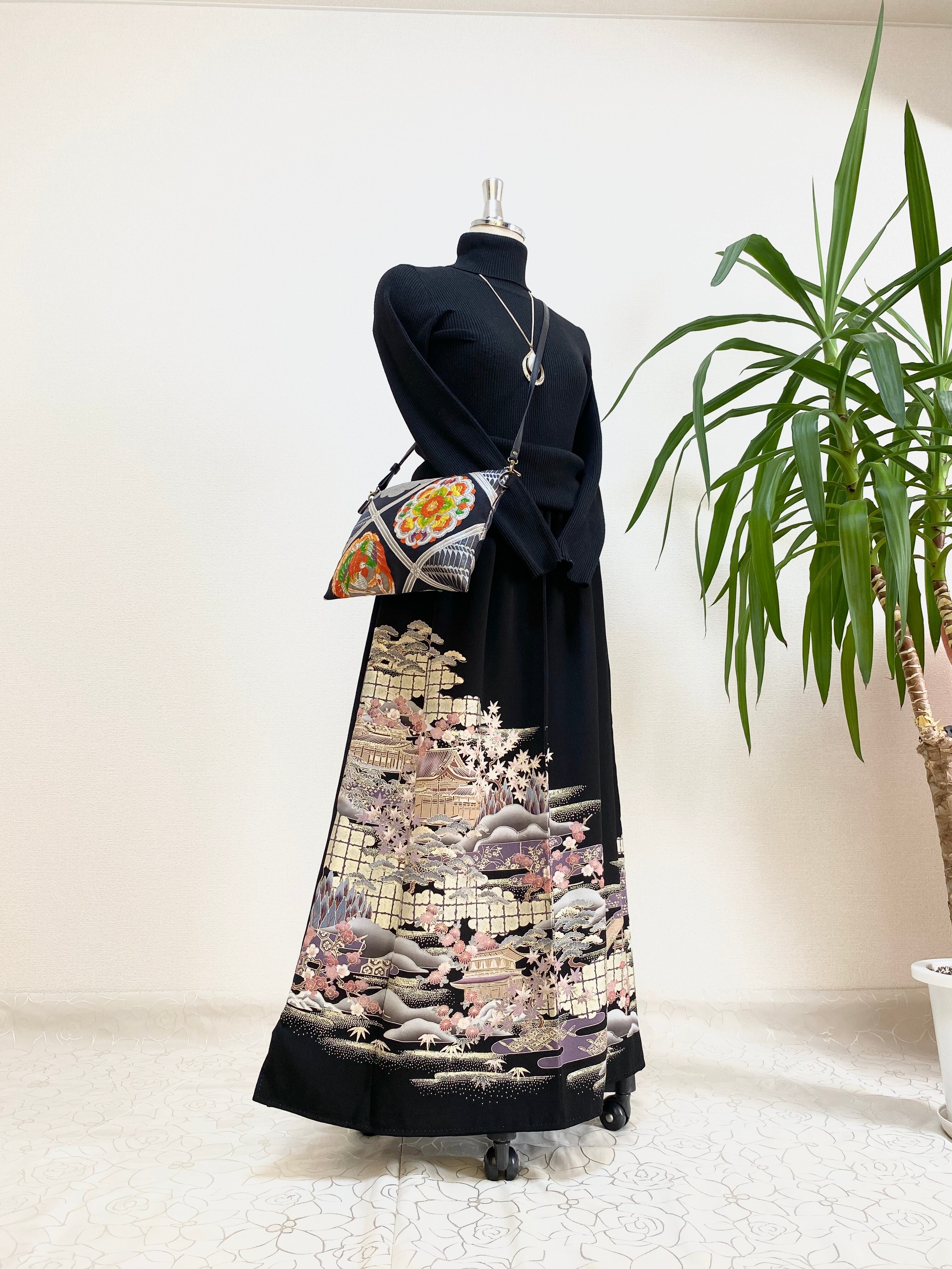 日本の古帯をリメイクして作成したサコッシュでハンドメイド品です。