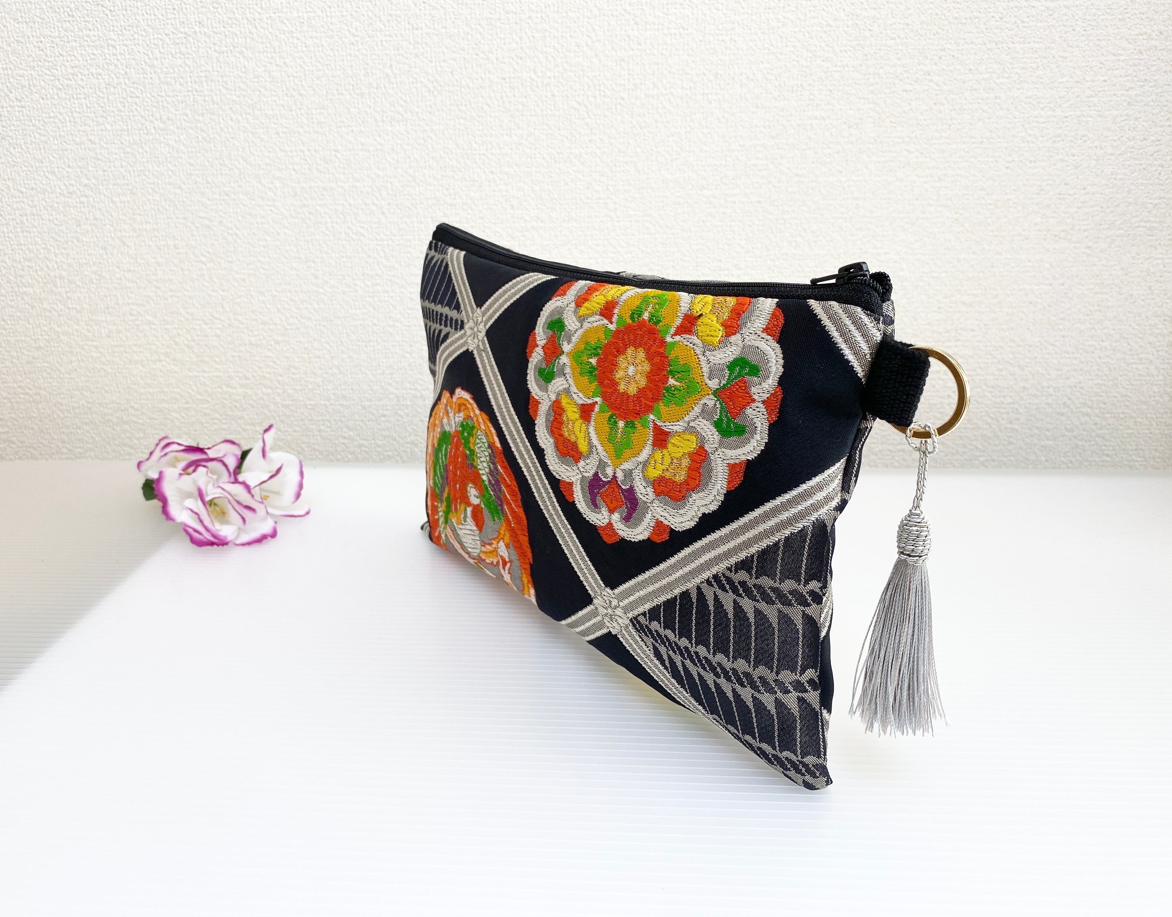 日本の古帯を再利用リメイクして作製したポーチでハンドメイド品です。