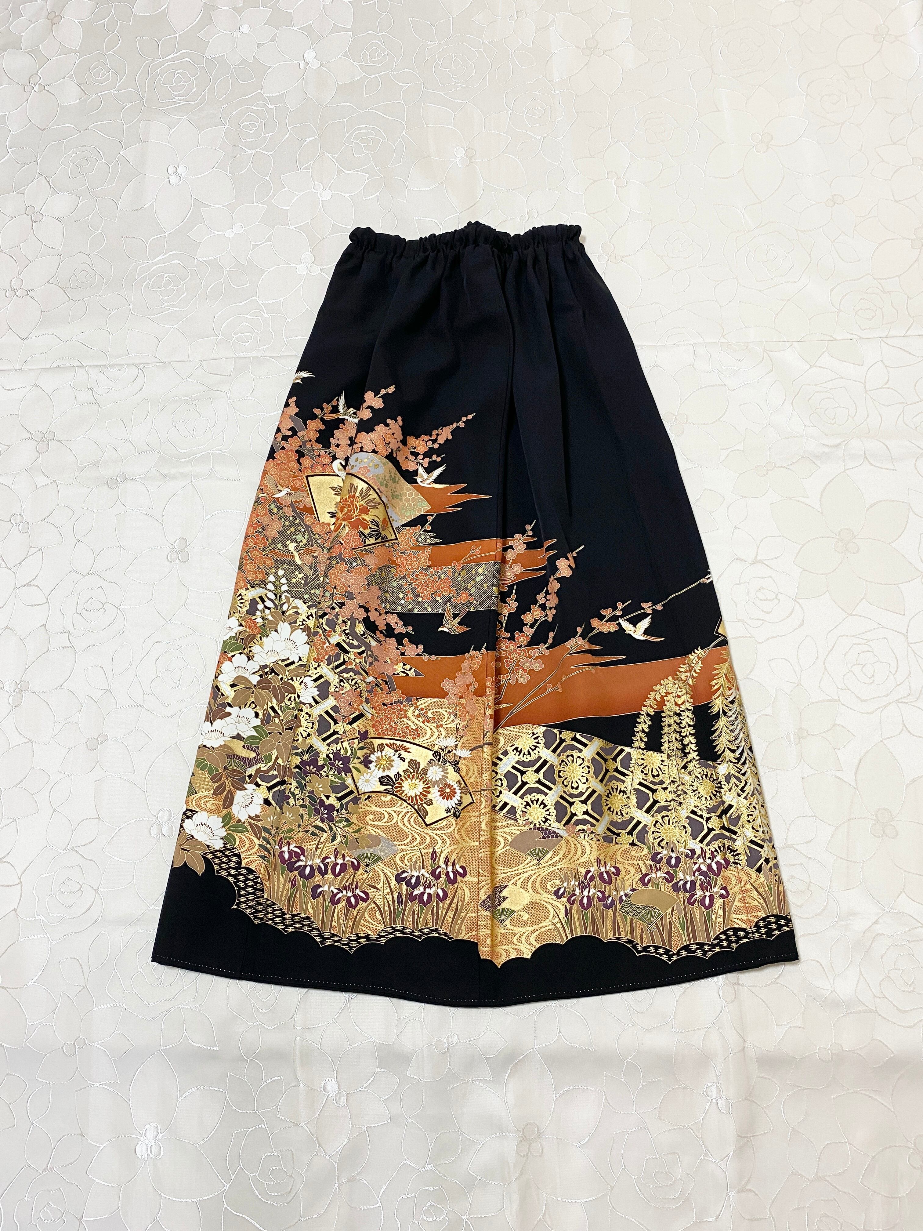 黒留袖着物リメイクウエストゴムロングスカートフリーサイズ