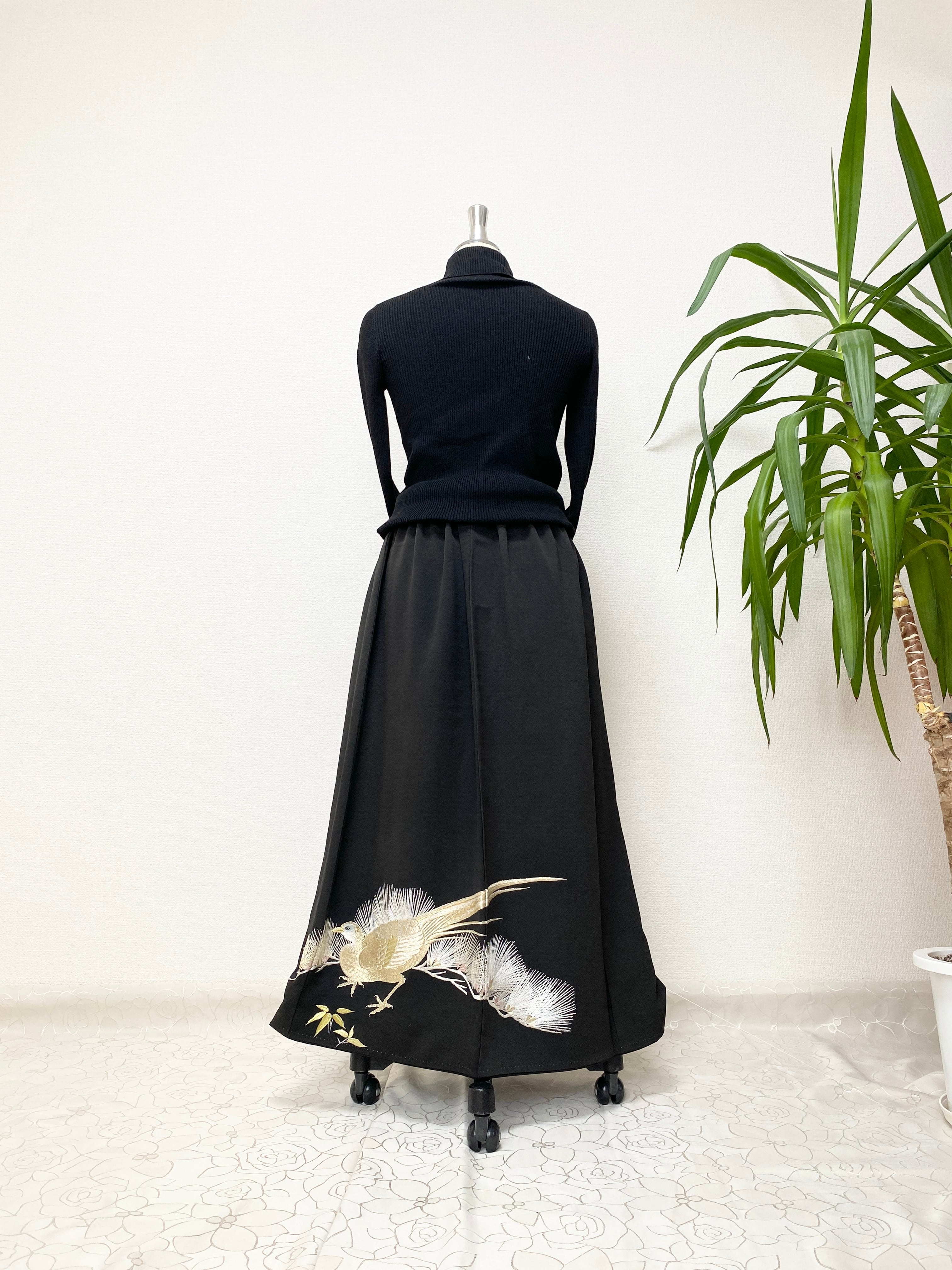 黒留袖着物リメイクウエストゴムロングスカートフリーサイズ