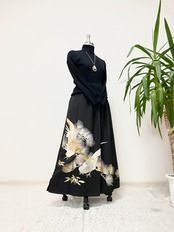 黒留袖着物リメイクウエストゴムロングスカート送料無料フリーサイズ1点物黒留袖着物リメイクウエストゴムロングスカートハンドメイド黒留袖着物リメイクロングスカート1点物NO.1058
