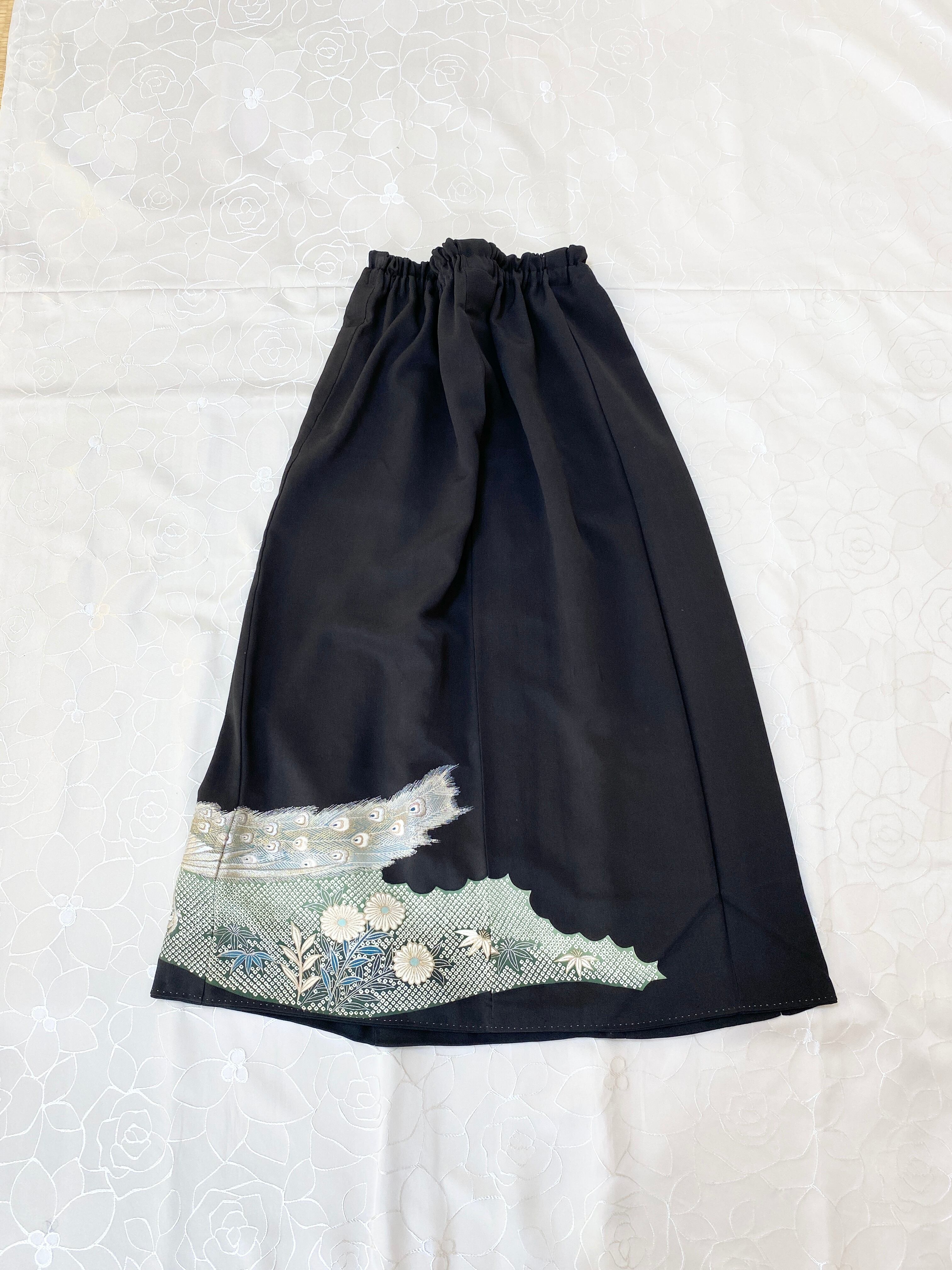 黒留袖着物リメイクウエストゴムロングスカート送料無料フリーサイズ1点物黒留袖着物リメイクウエストゴムロングスカートハンドメイド黒留袖着物リメイクロングスカート1点物NO.1068