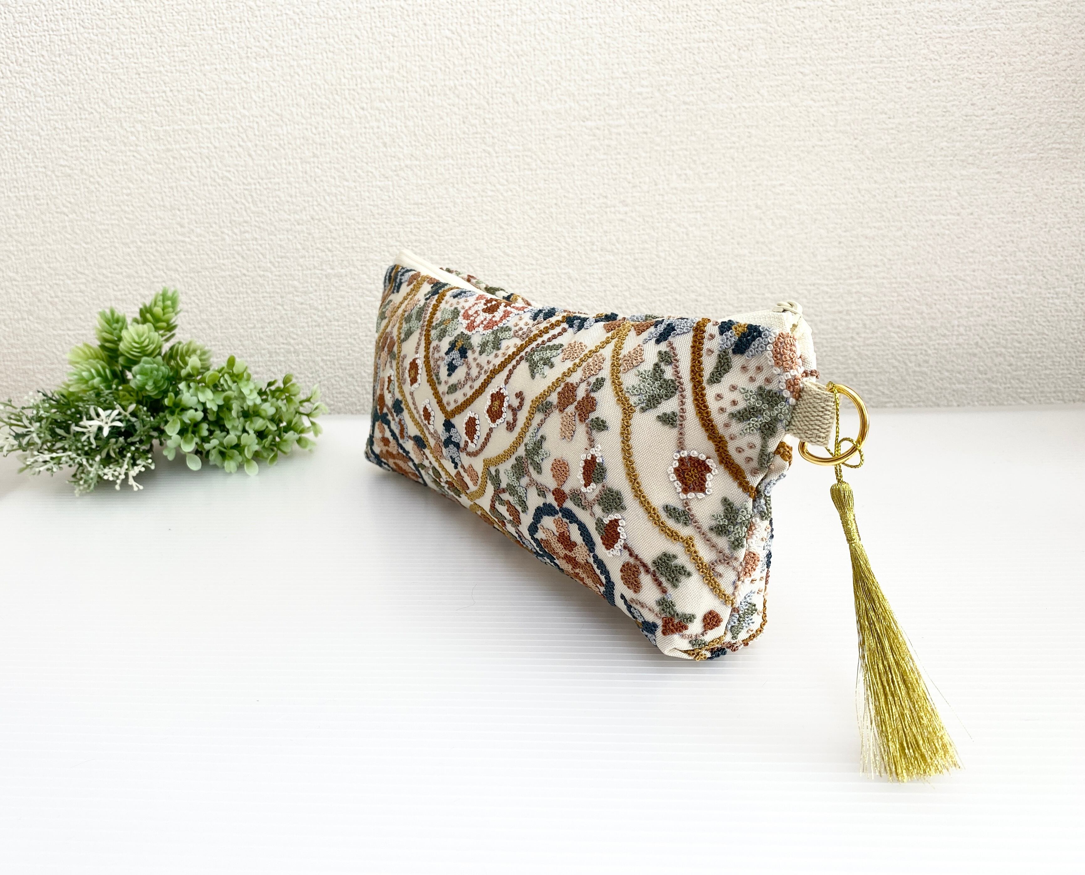 日本の古帯をリメイクして作製したポーチでハンドメイド品です。