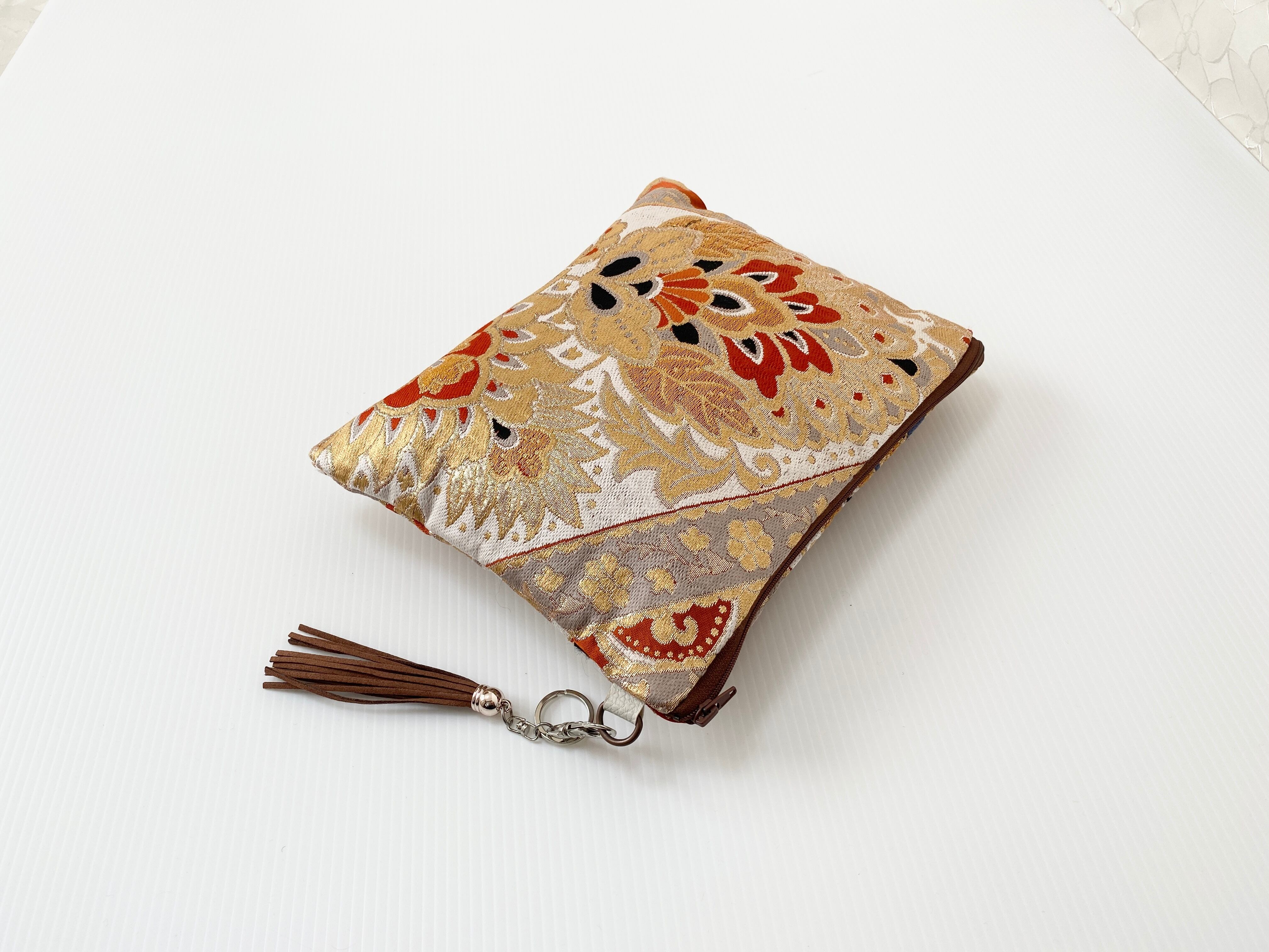 日本の古帯をリメイクして作成したバッグ クラッチバッグでハンドメイド品です。