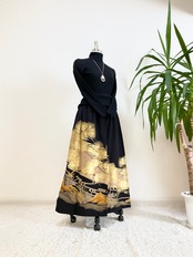 黒留袖着物をリメイクして作製したウエストゴムロングドレススカートフリーサイズです。