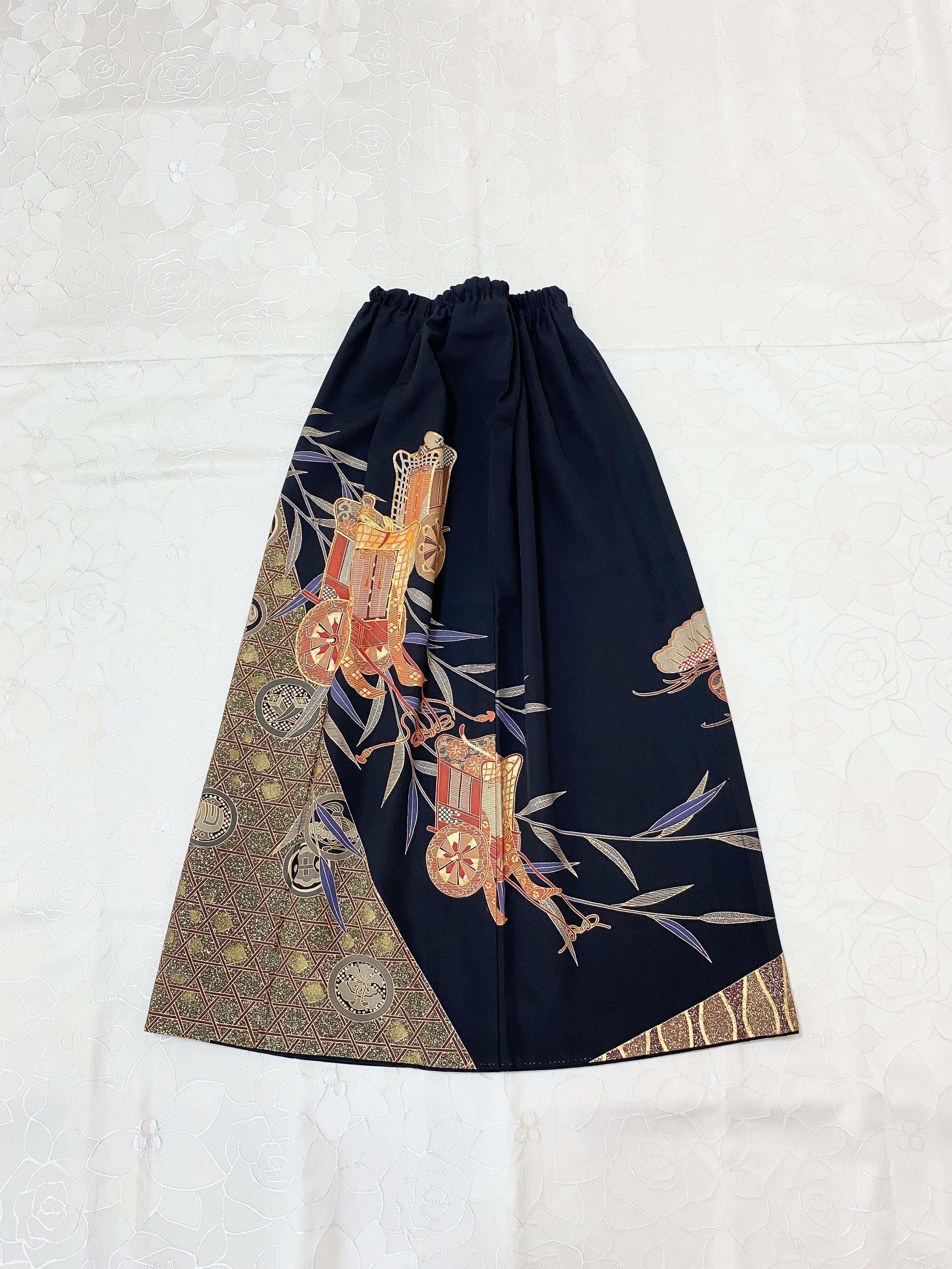 黒留袖着物リメイクウエストゴムロングスカートフリーサイズ