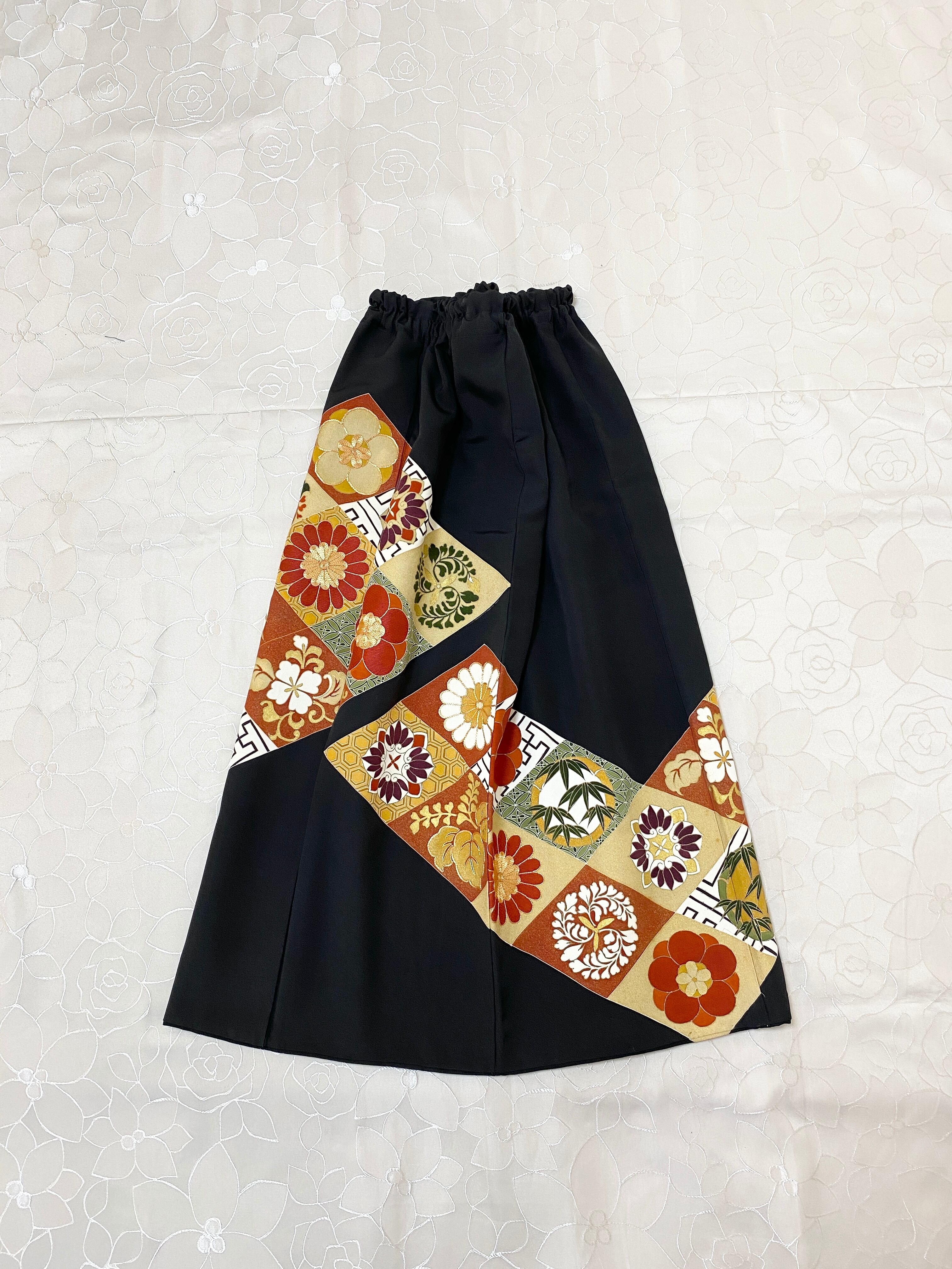 黒留袖着物リメイクウエストゴムロングスカート送料無料フリーサイズ1点物黒留袖着物リメイクウエストゴムロングスカートハンドメイド黒留袖着物リメイクロングスカート1点物NO.1111