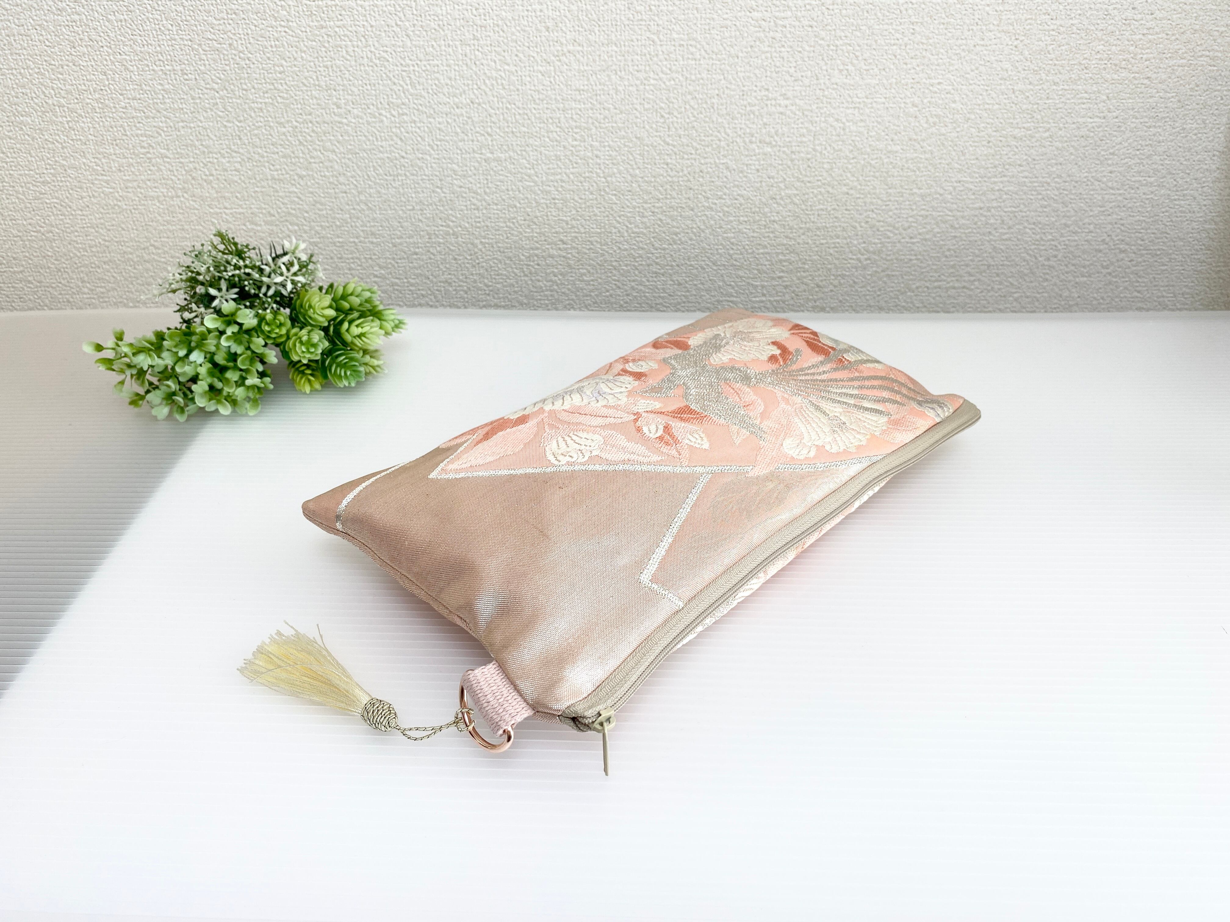 日本の古帯をリメイクして作製したポーチでハンドメイド品です。