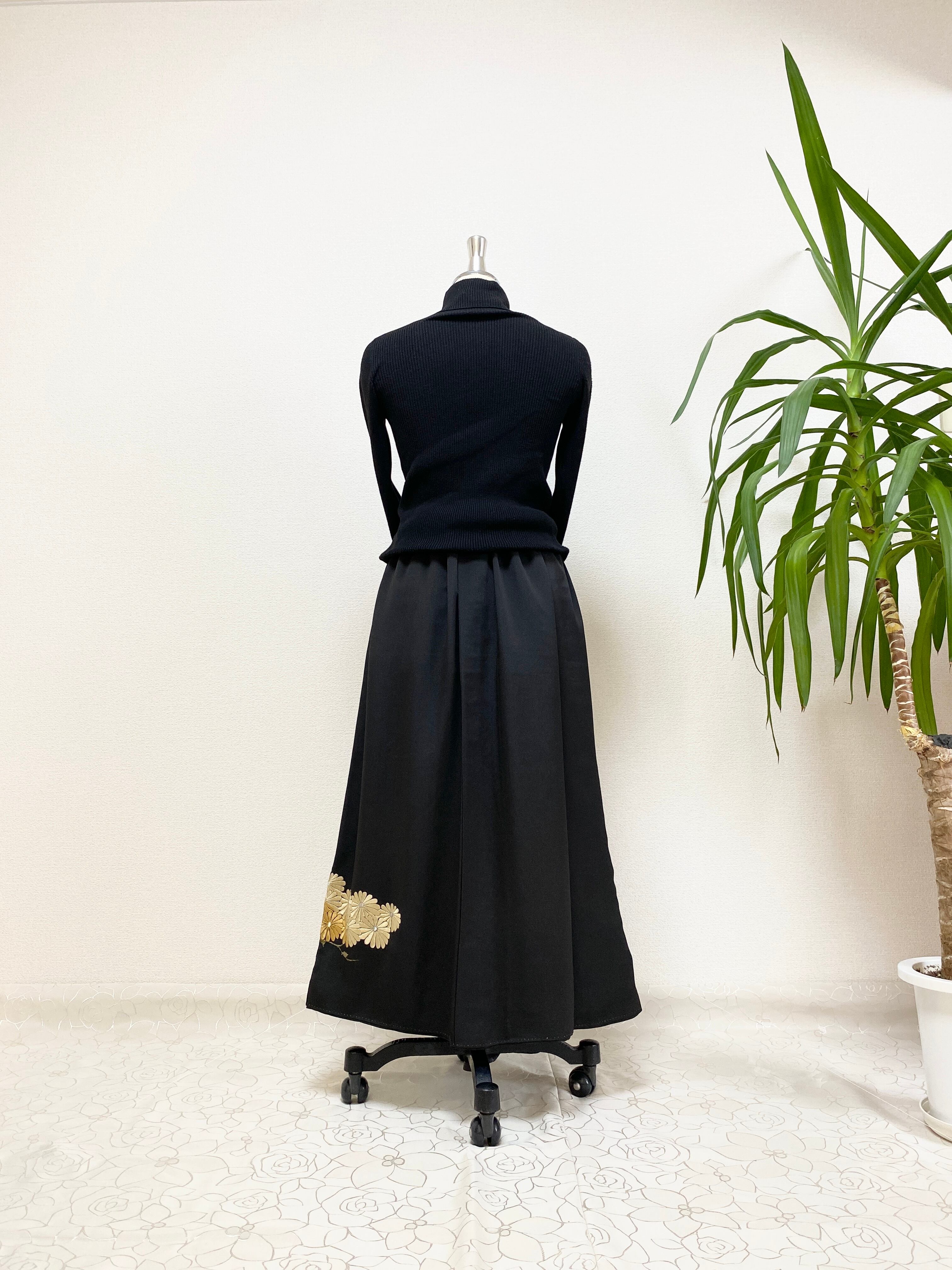 黒留袖着物リメイクウエストゴムロングスカートフリーサイズ