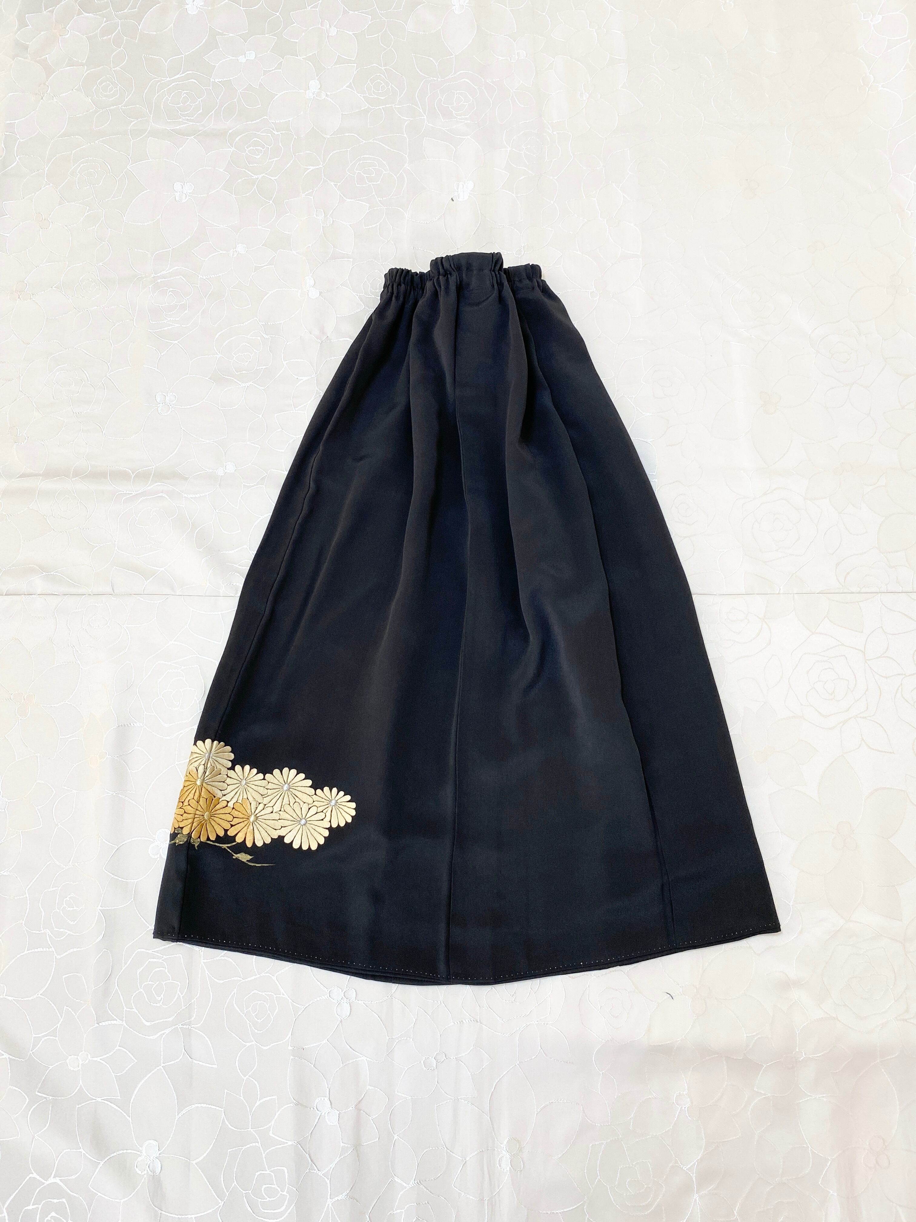 黒留袖着物リメイクウエストゴムロングスカート送料無料フリーサイズ1点物黒留袖着物リメイクウエストゴムロングスカートハンドメイド黒留袖着物リメイクロングスカート1点物NO.1209