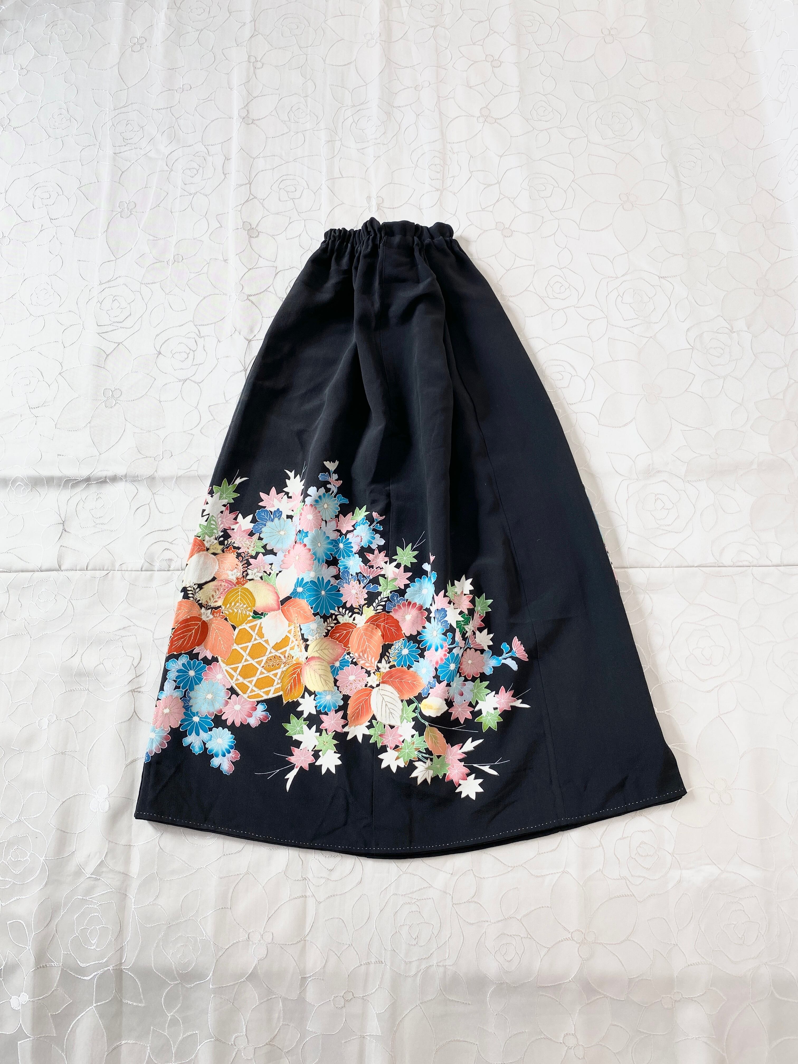 黒留袖着物リメイクウエストゴムロングスカートフリーサイズ