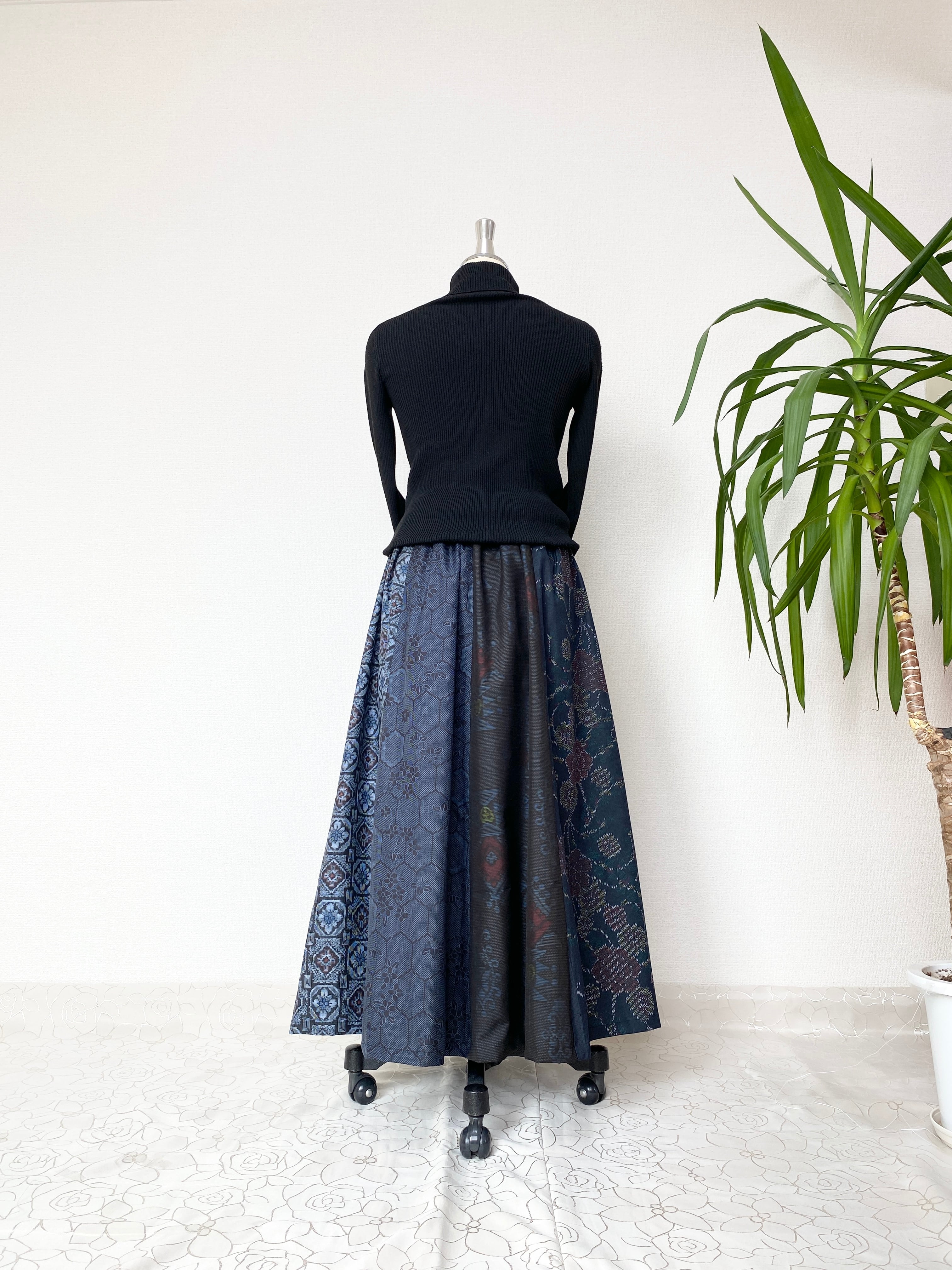 大島着物リメイクウエストゴムロングスカートフリーサイズ