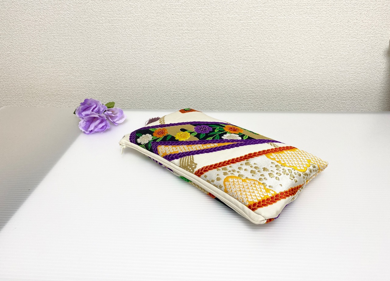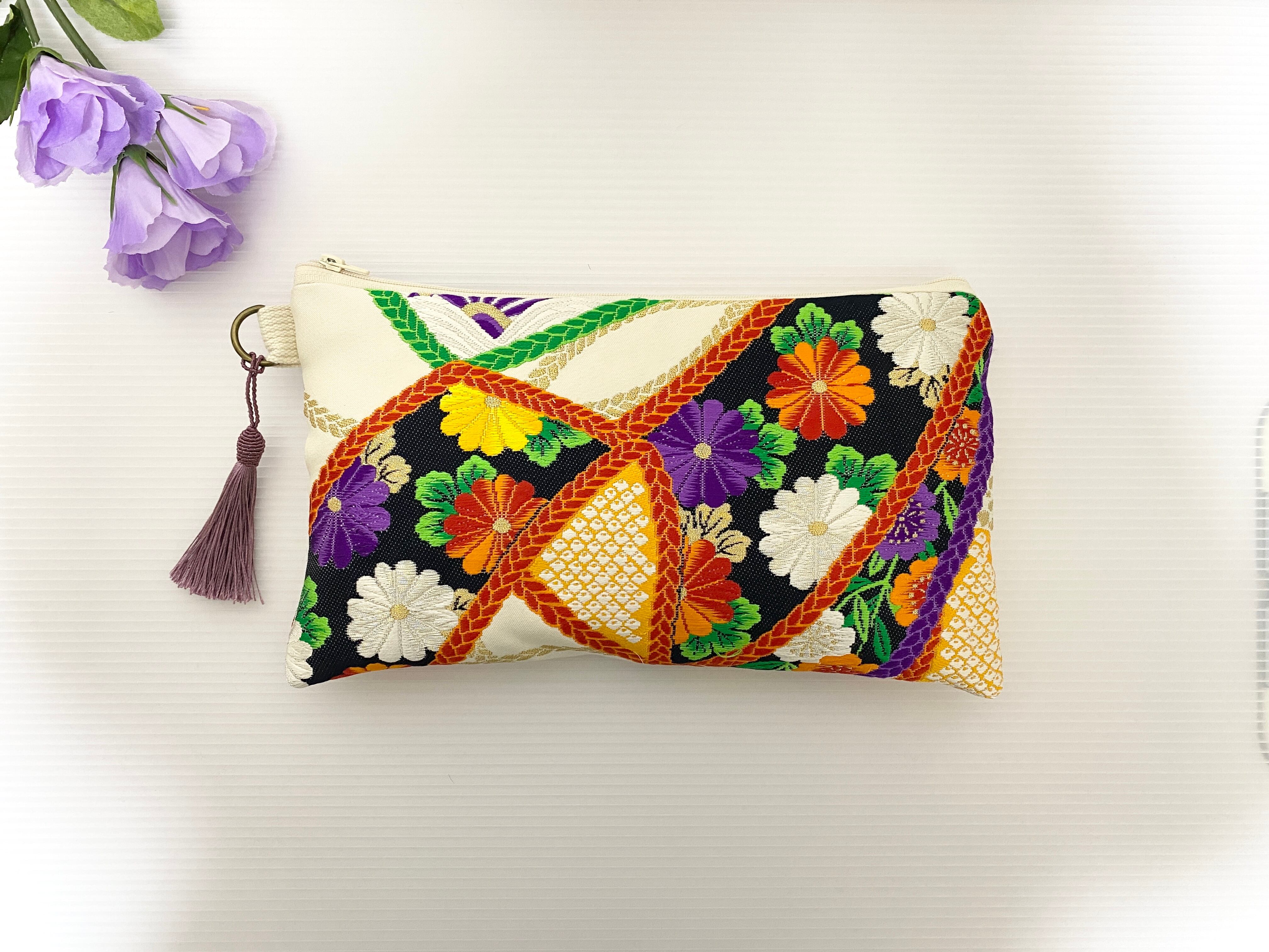 帯リメイクポーチ【大きめマチ無し】化粧ポーチ1点物ハンドメイド送料無料帯リメイクポーチ可愛いポーチ【大きめマチ無し】トラベルポーチ帯ポーチメイクポーチ帯リメイクポーチNO.1238