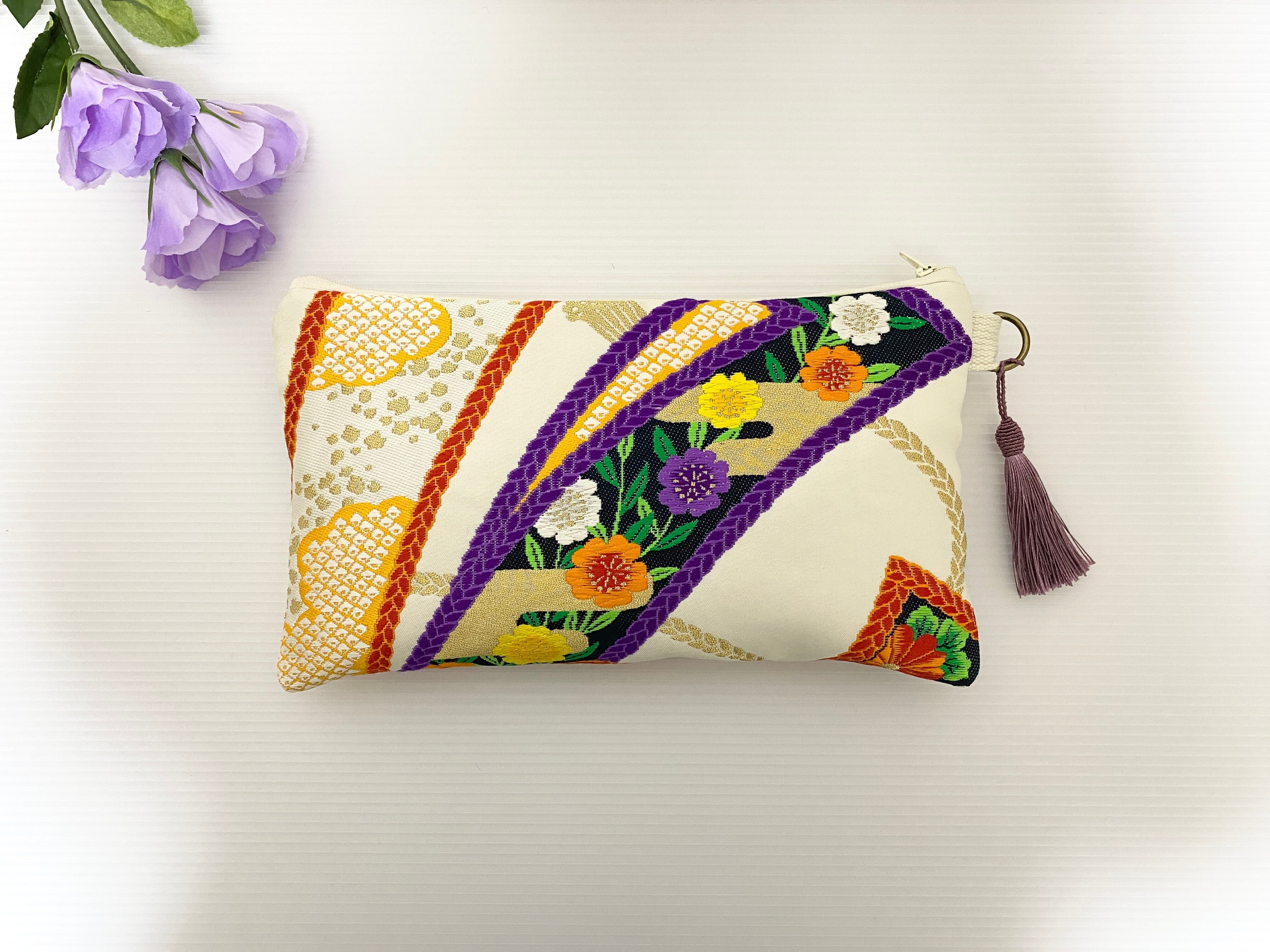 裏生地にも帯を使用しておりますのでしっかりとした造りの帯リメイクポーチです。