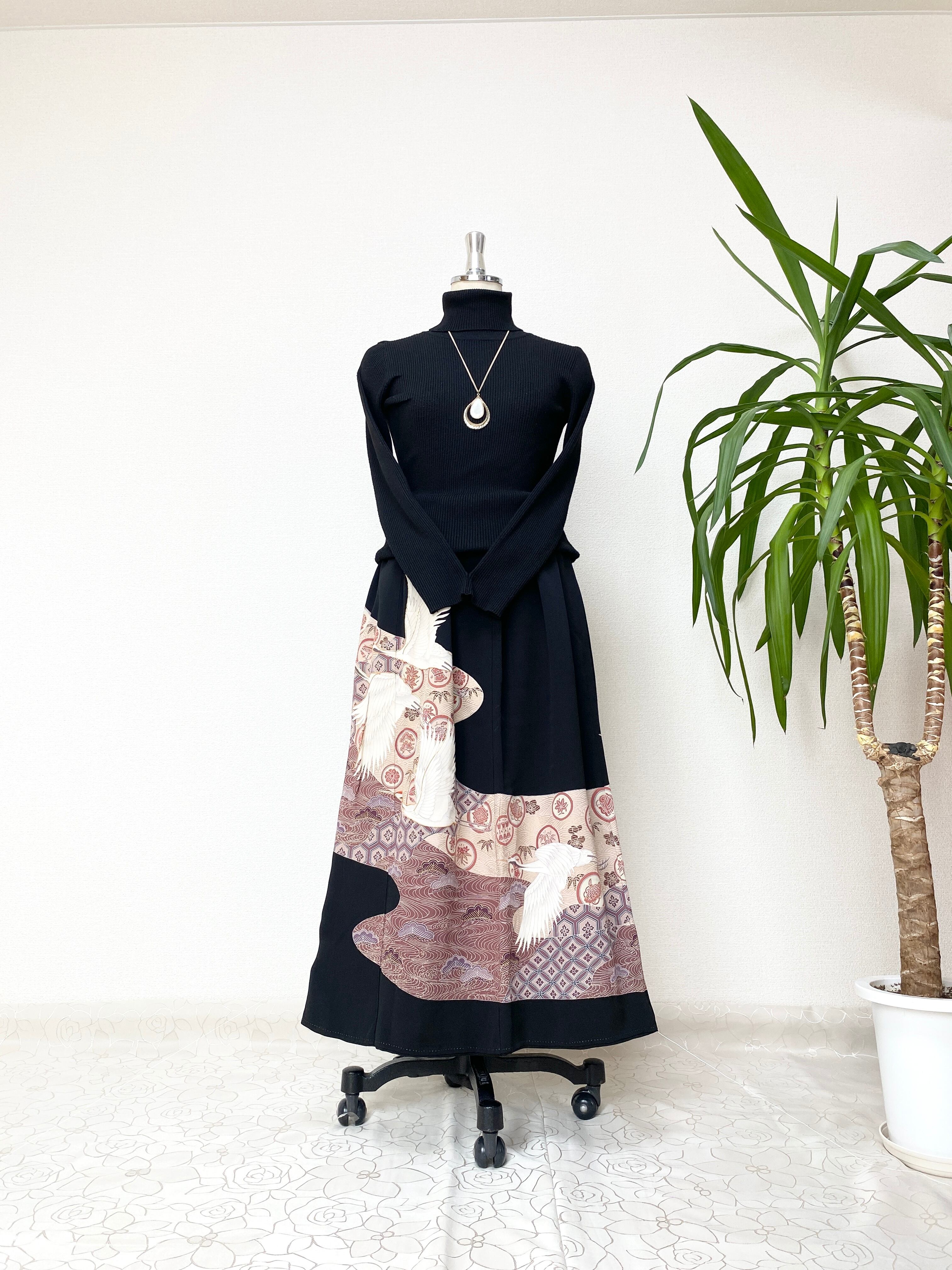 黒留袖着物リメイクウエストゴムロングスカートフリーサイズ