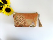日本の古帯をリメイクして作製したポーチでハンドメイド品です。