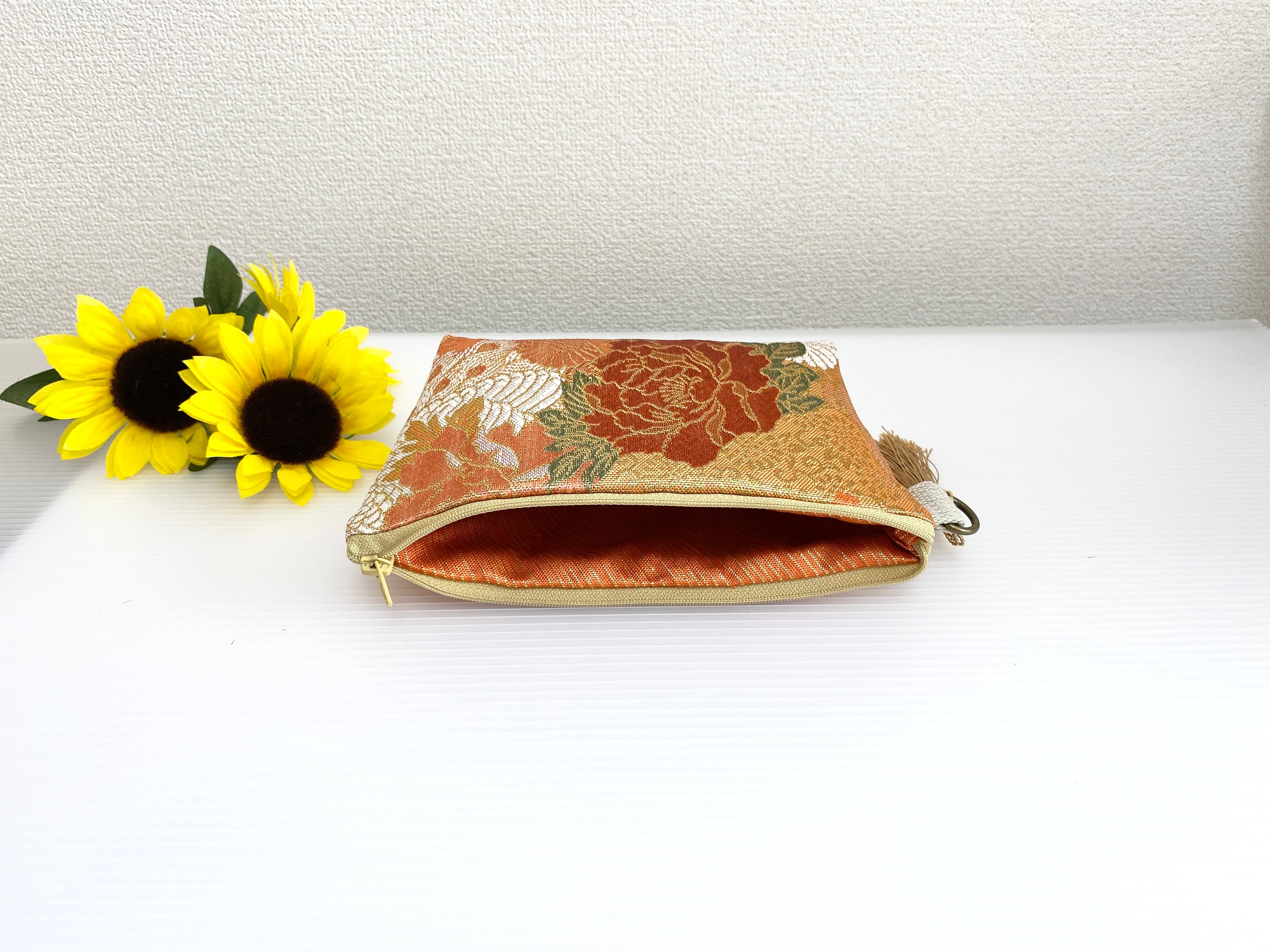 日本の古帯をリメイクして作製したポーチでハンドメイド品です。