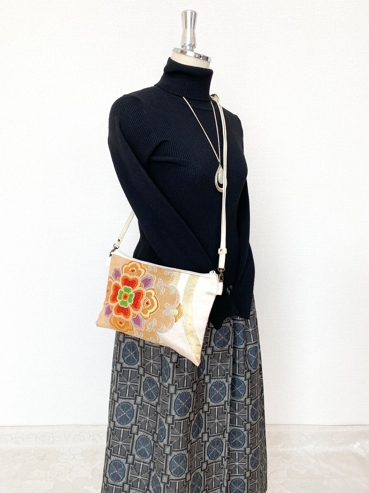 触り心地が滑らかで手にしっくりとくる安心感。絵柄の鮮やかさは日本の帯ならではの存在感で素晴らしく華やかな美しさです。