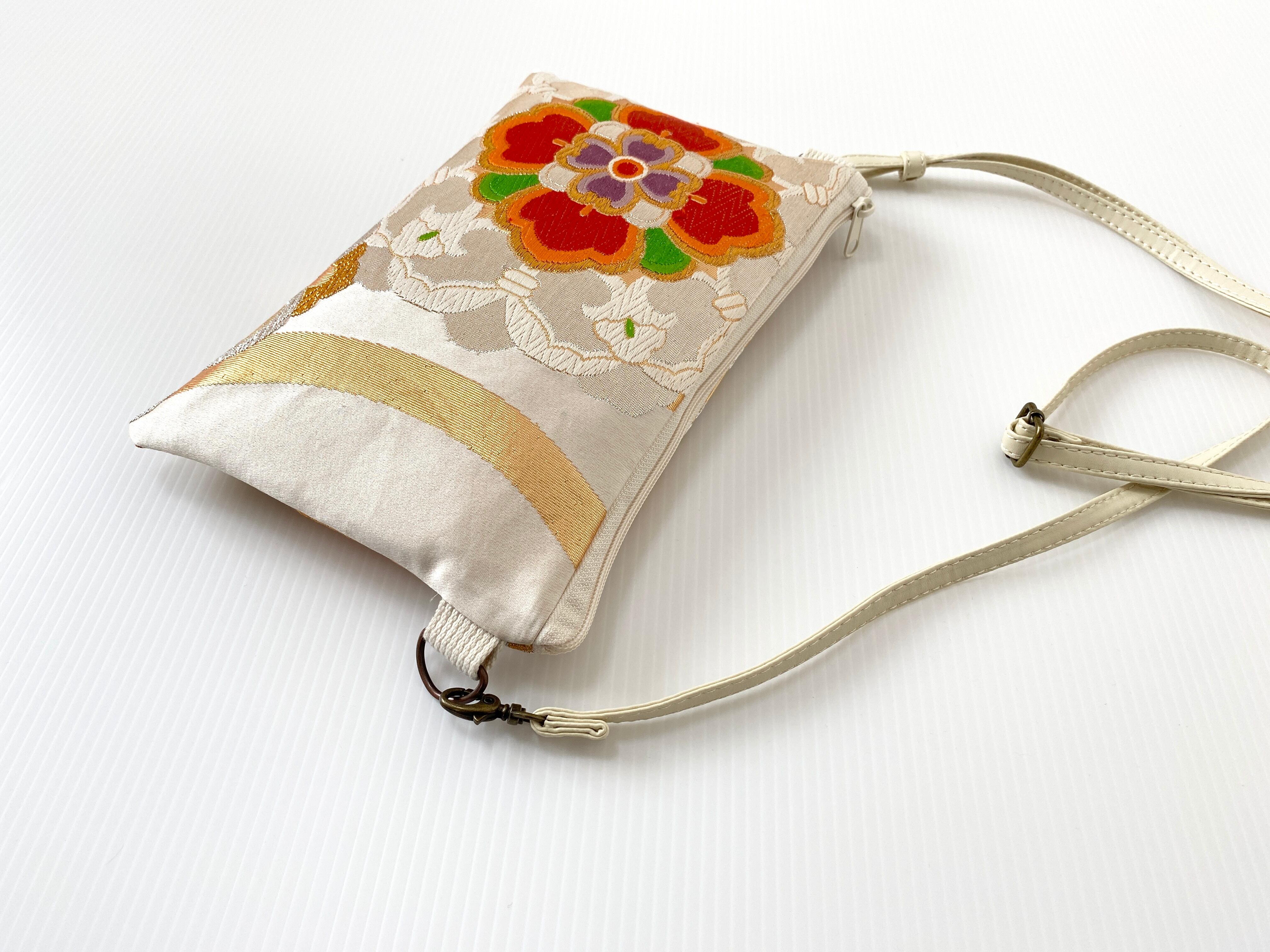 日本の古帯をリメイクして作成したサコッシュバッグでハンドメイド品です。