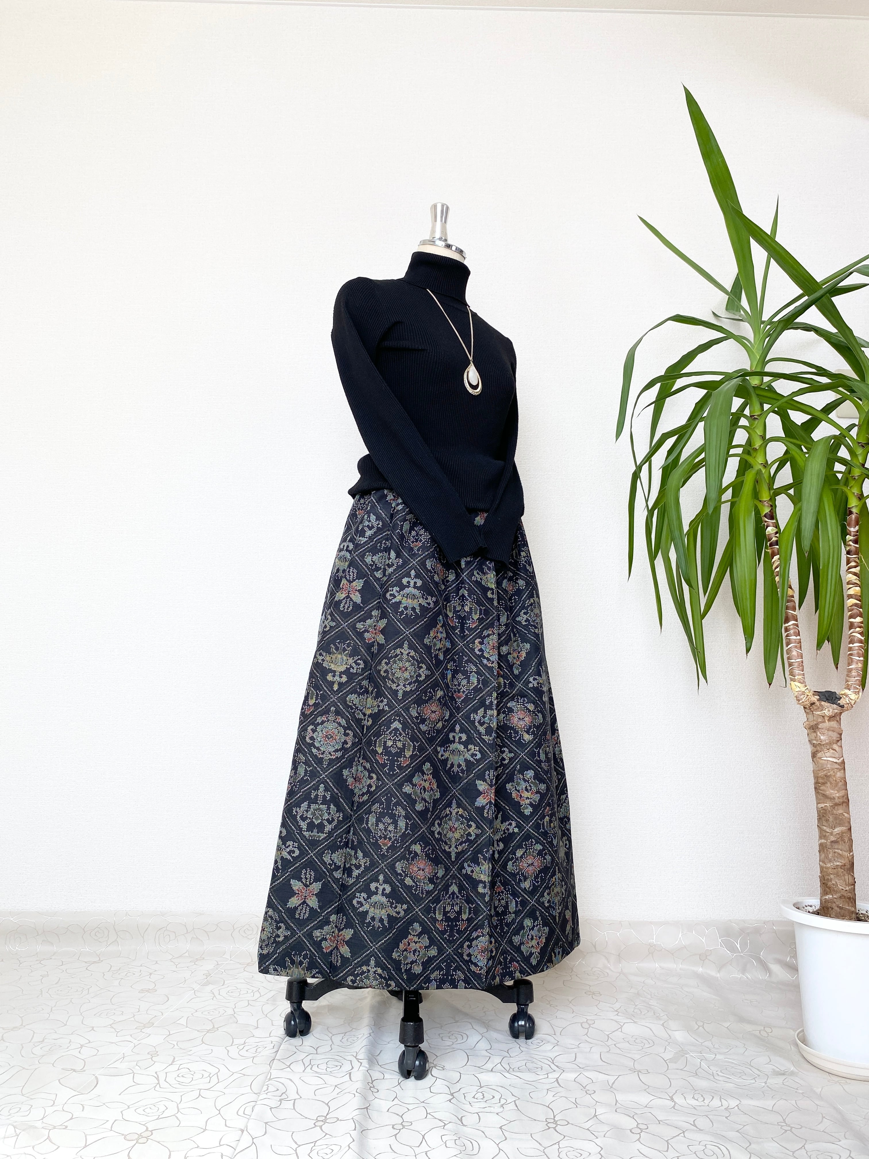 大島着物リメイクウエストゴムロングスカートフリーサイズ