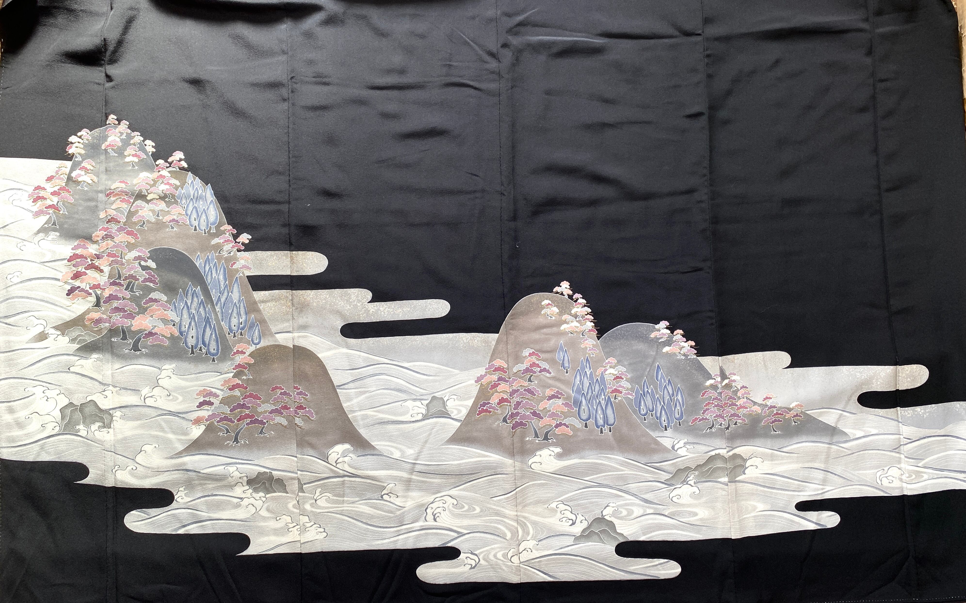黒留袖着物リメイクウエストゴムロングスカート送料無料フリーサイズ1点物黒留袖着物リメイクウエストゴムロングスカートハンドメイド黒留袖着物リメイクロングスカート1点物NO.1273