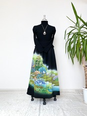 黒留袖着物をリメイクして作製したウエストゴムロングドレススカートフリーサイズです。