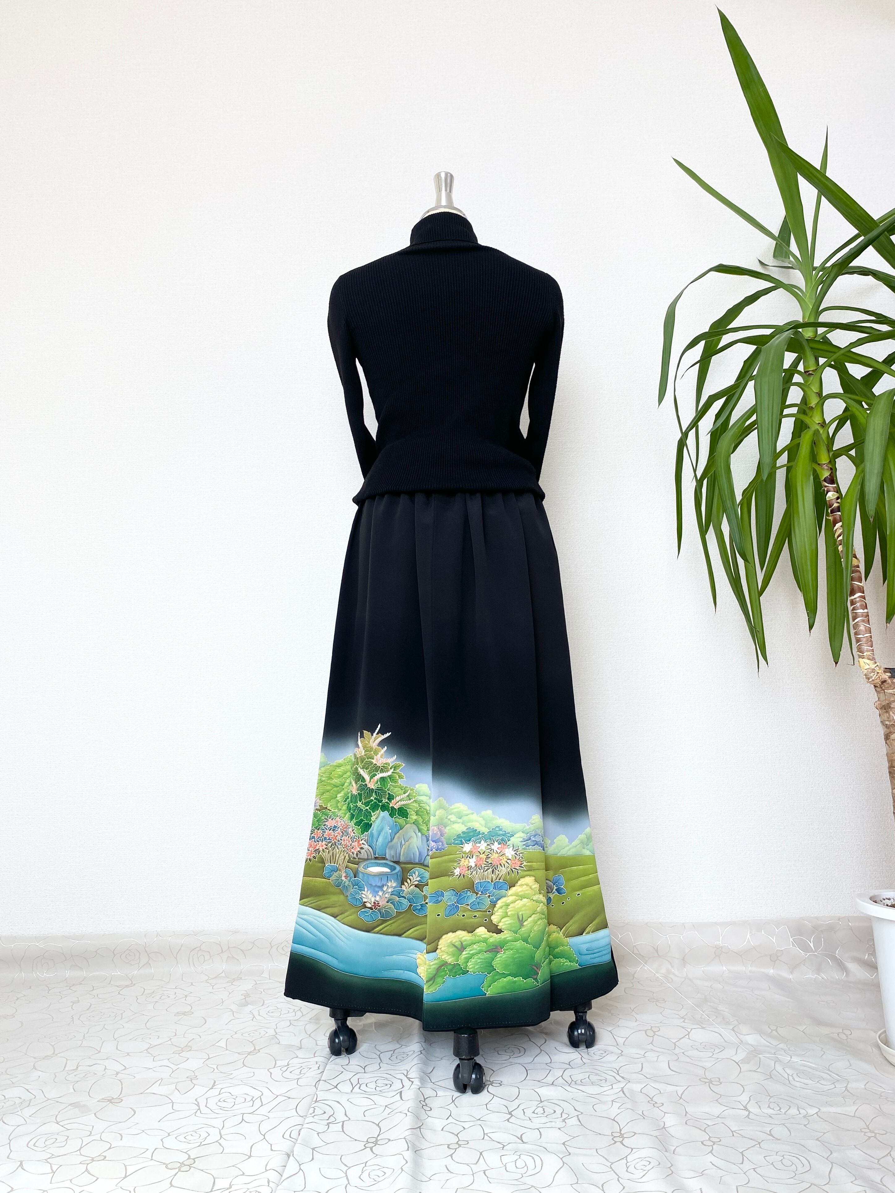 黒留袖着物リメイクウエストゴムロングスカート送料無料フリーサイズ1点物黒留袖着物リメイクウエストゴムロングスカートハンドメイド黒留袖着物リメイクロングスカート1点物NO.1282