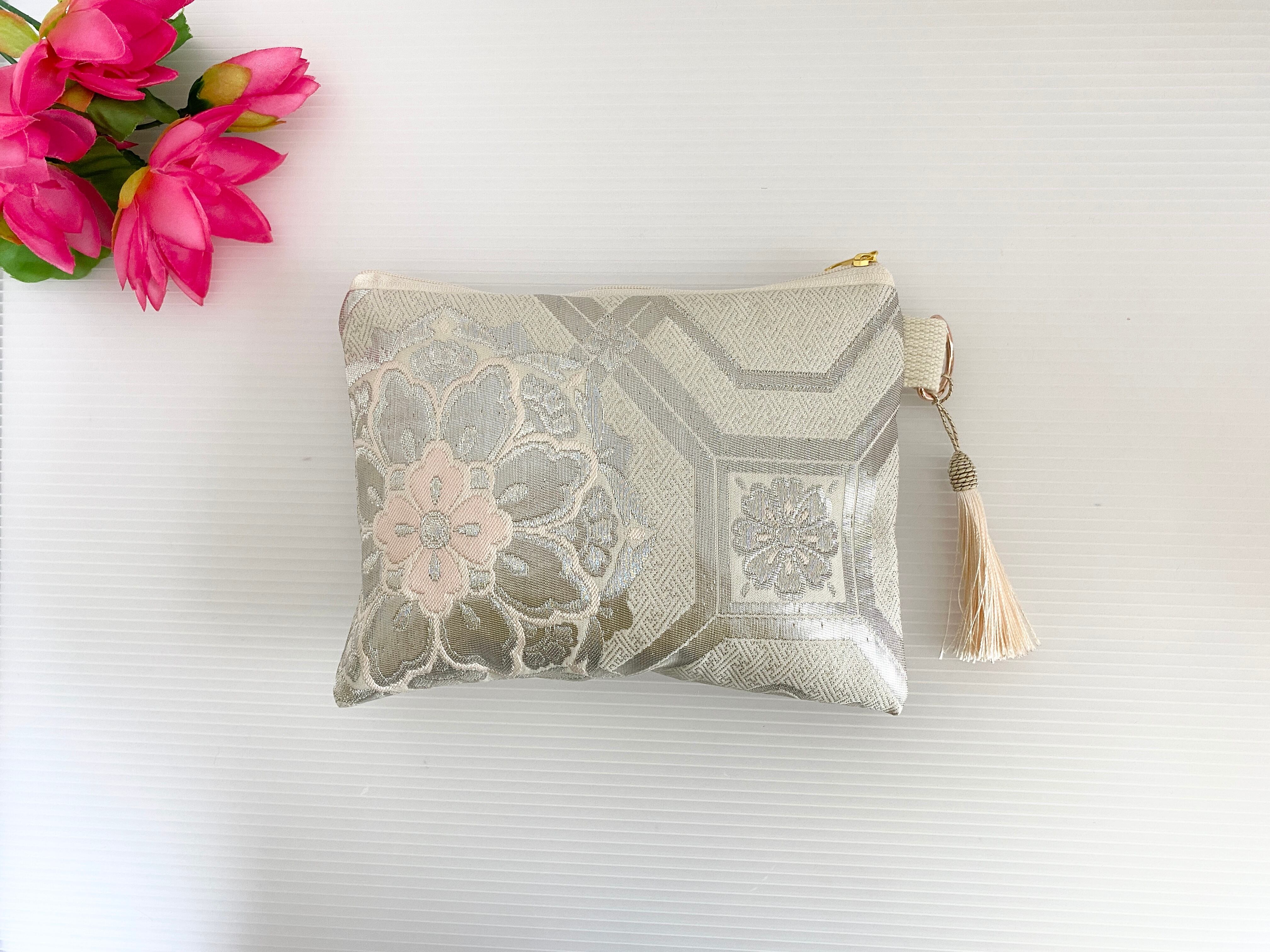 日本の古帯をリメイクして作製したポーチでハンドメイド品です。