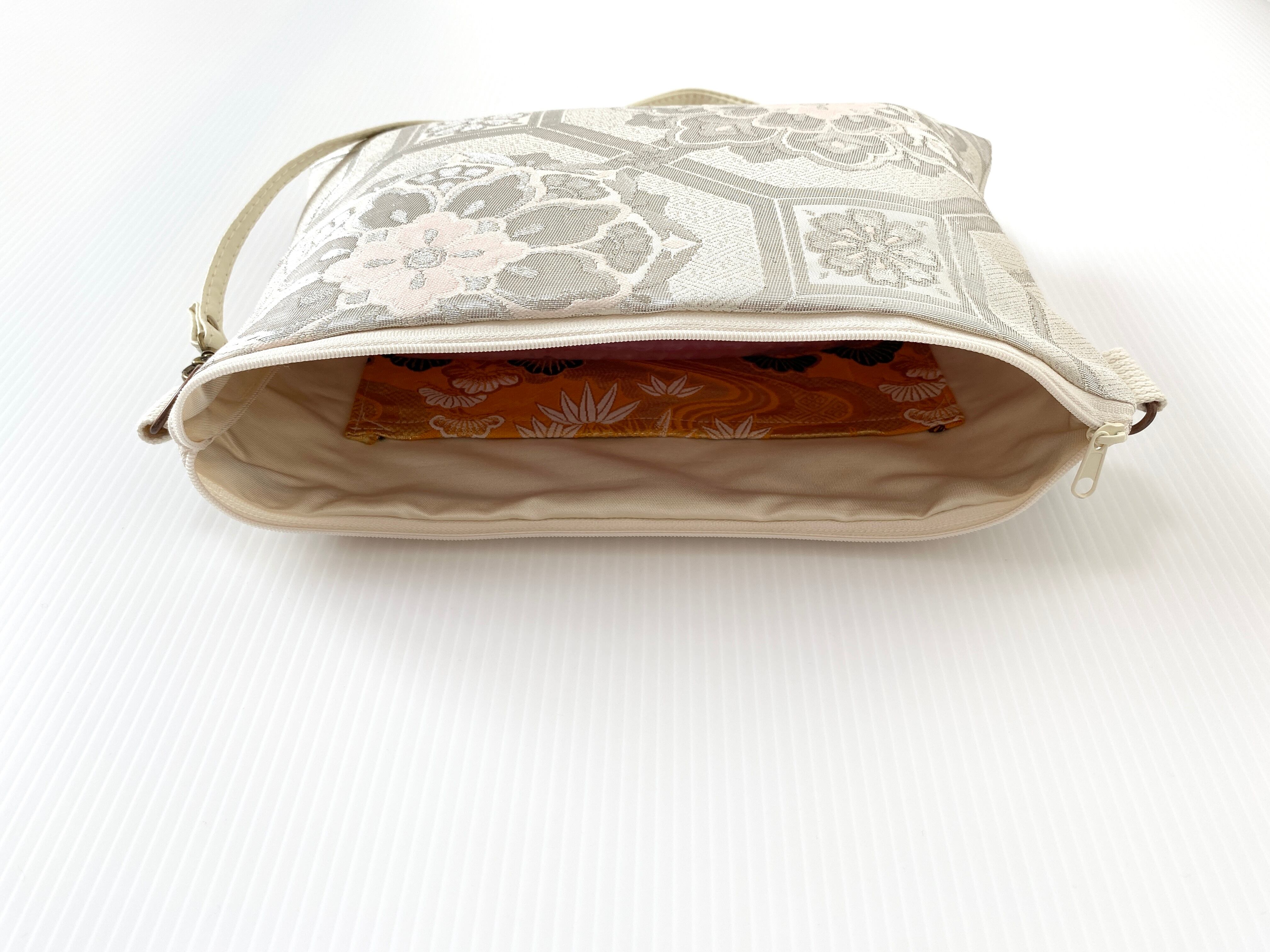 裏地にも帯生地を使用しております。しっかりとした帯生地で製作したサコッシュバッグですので強度もあり安心。