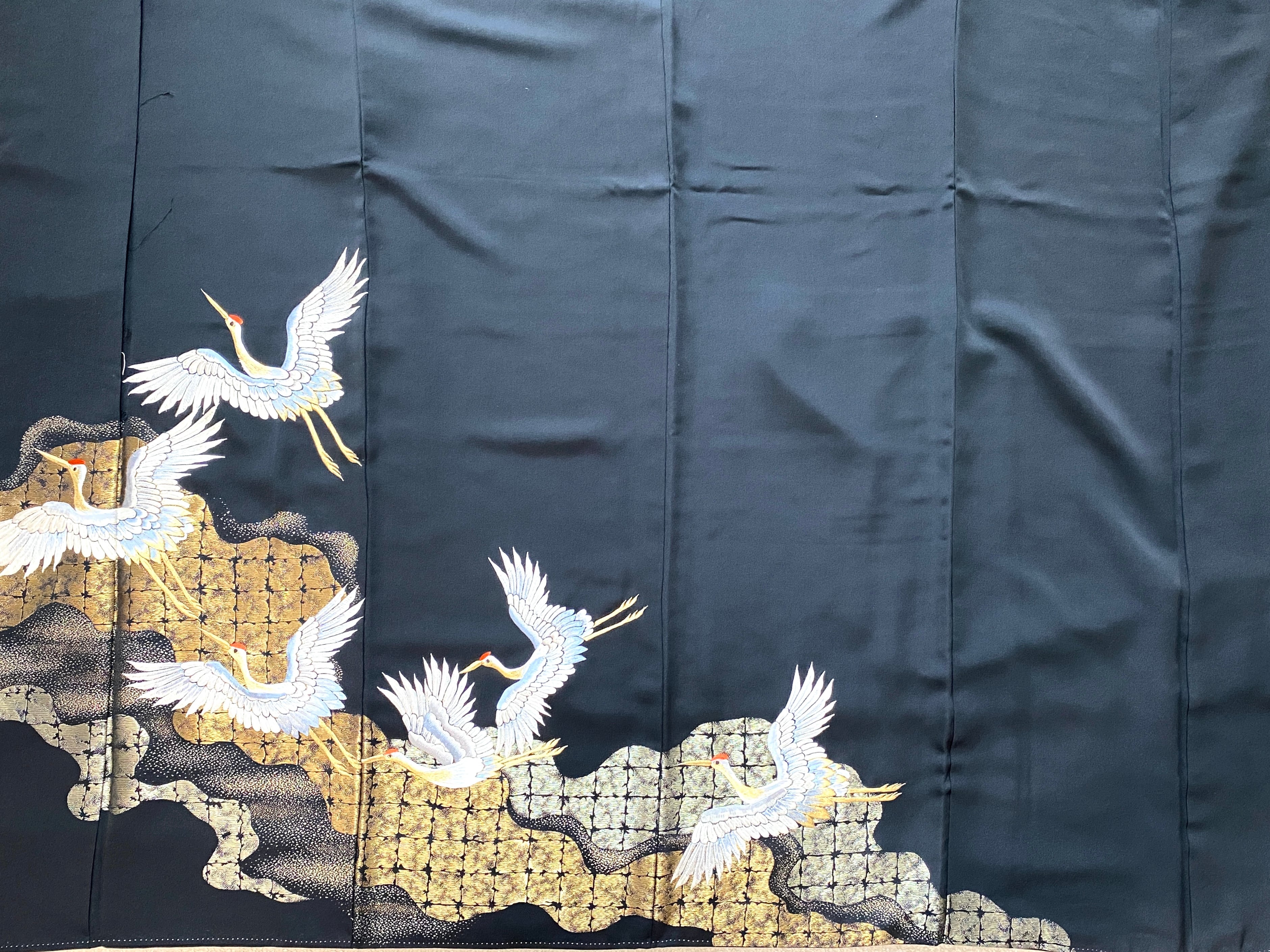 黒留袖着物リメイクウエストゴムロングスカート送料無料フリーサイズ1点物黒留袖着物リメイクウエストゴムロングスカートハンドメイド黒留袖着物リメイクロングスカート1点物NO.1300