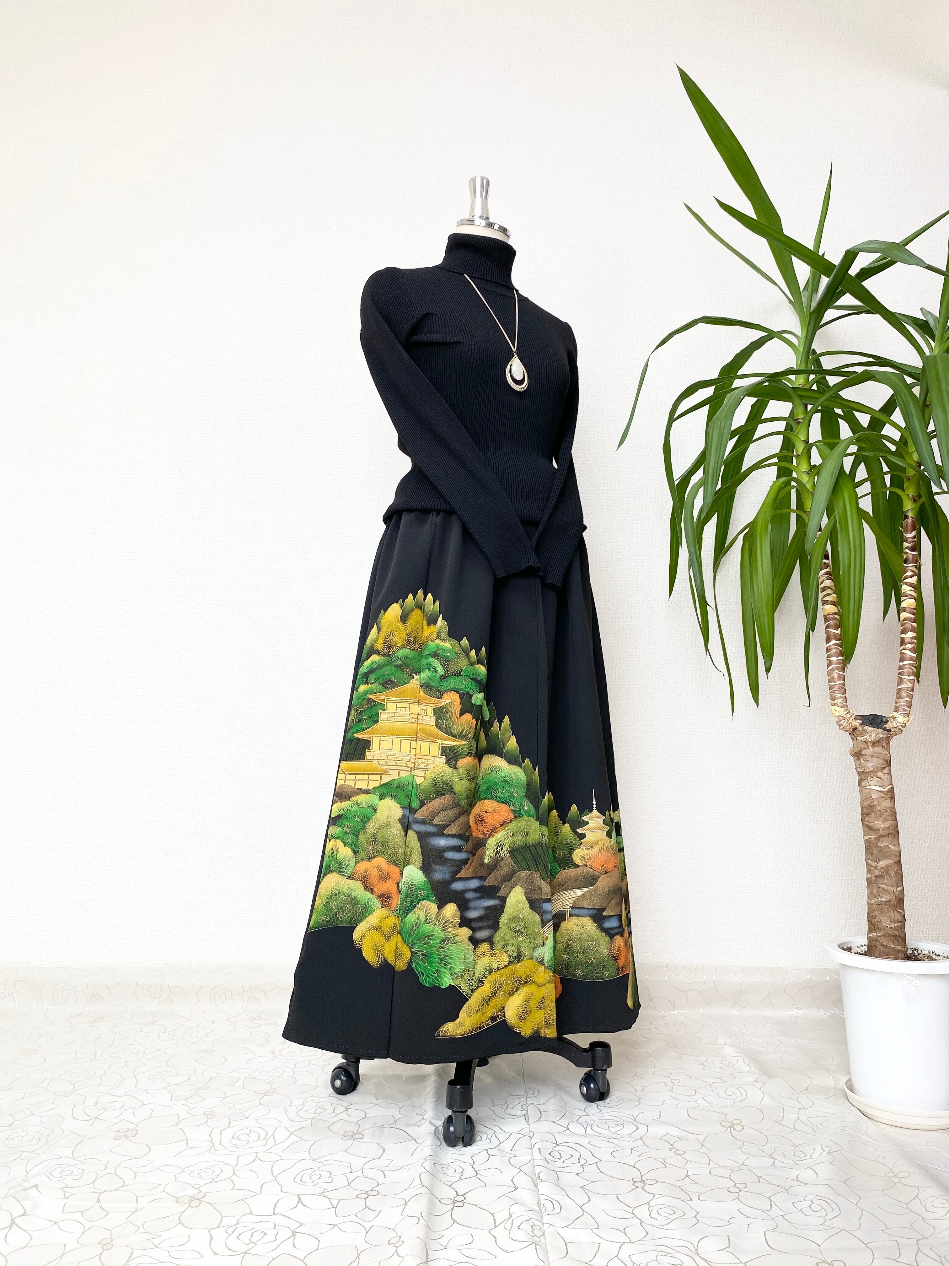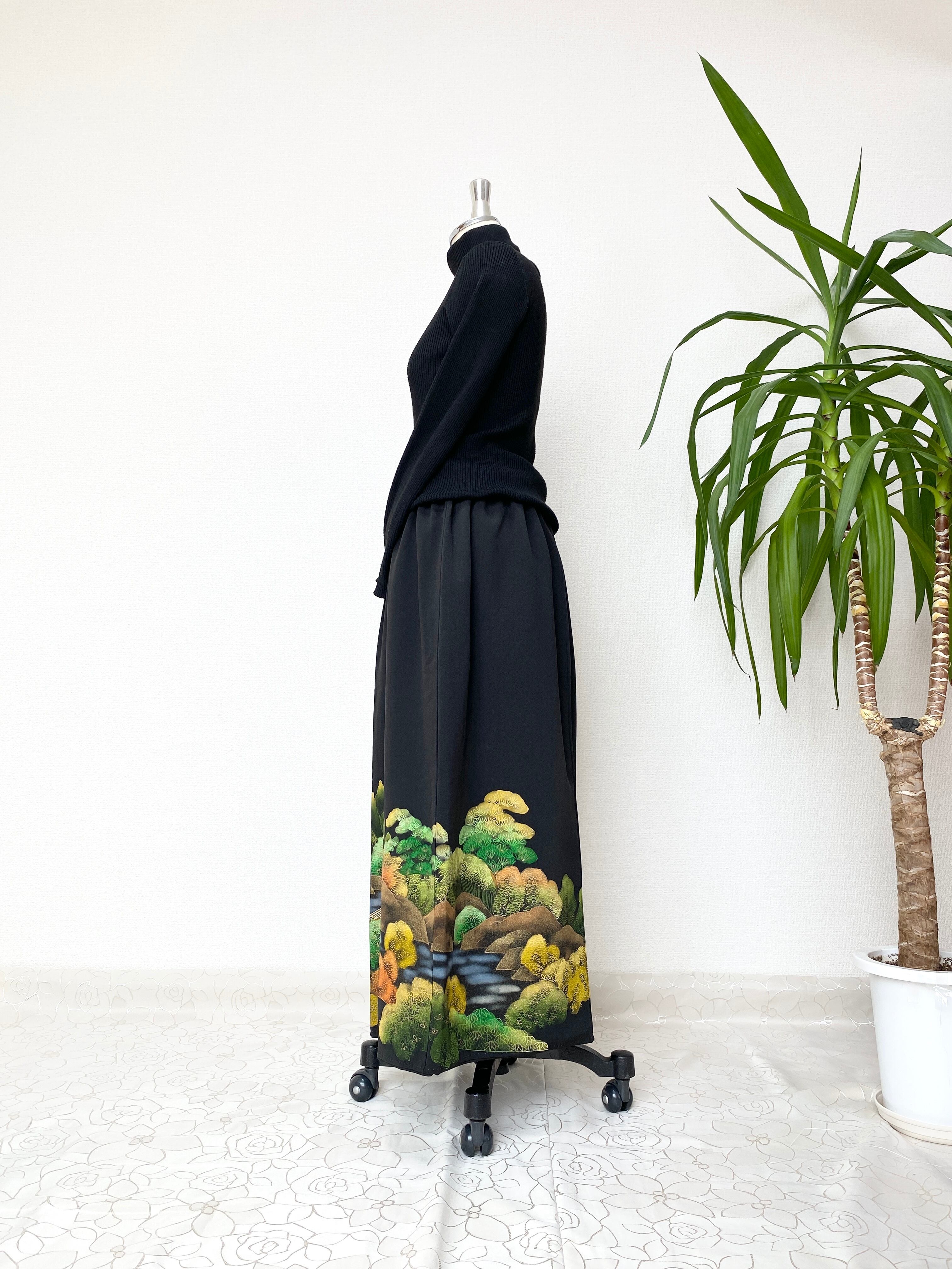 黒留袖着物リメイクウエストゴムロングスカート送料無料フリーサイズ1点物黒留袖着物リメイクウエストゴムロングスカートハンドメイド黒留袖着物リメイクロングスカート1点物NO.1302