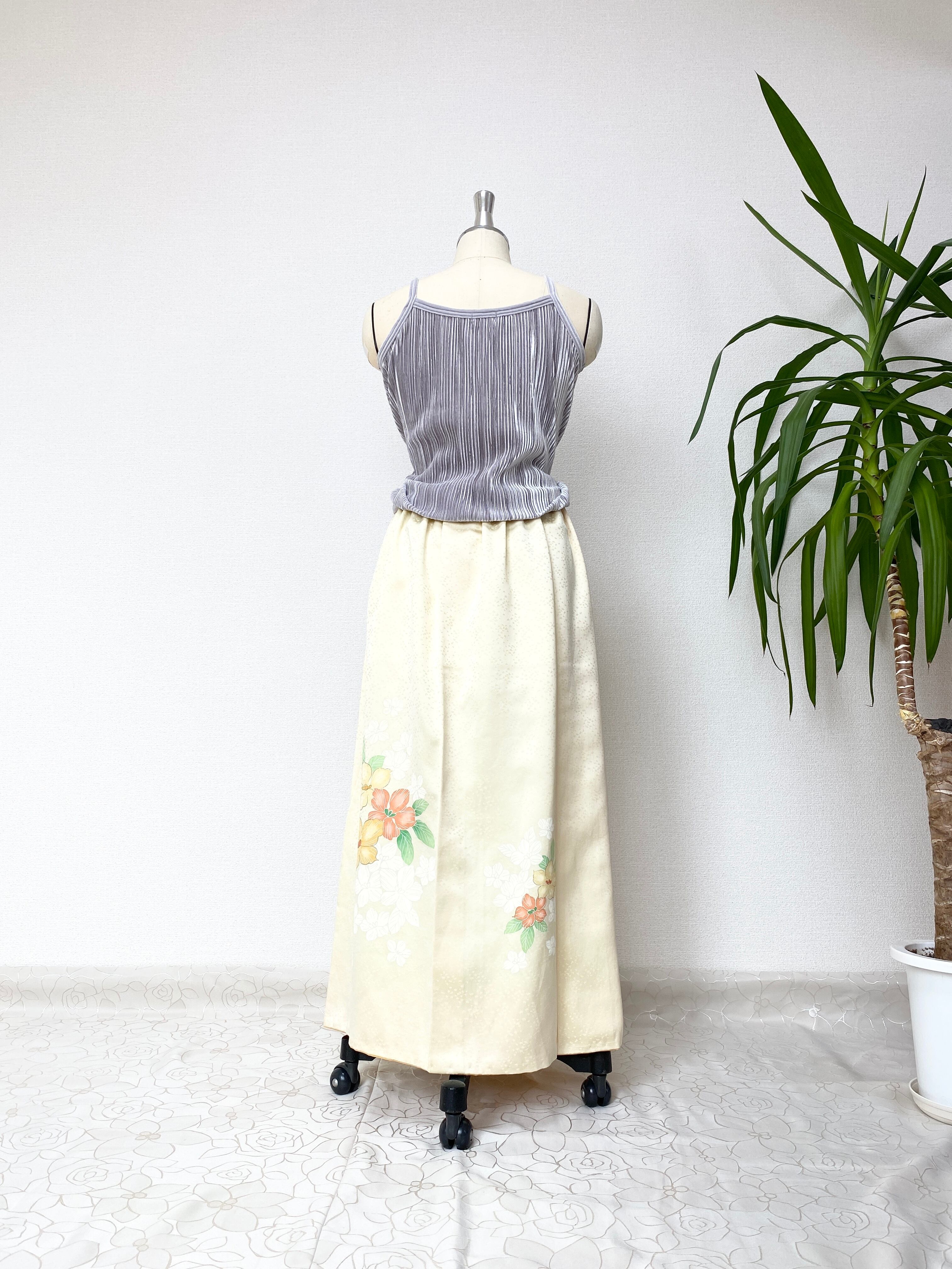 スカートは裏地も付いていてしっかりとした造りの着物リメイクスカートです。ウエスト回りのゴロつき無くスッキリとしたシルエットで着こなせます。