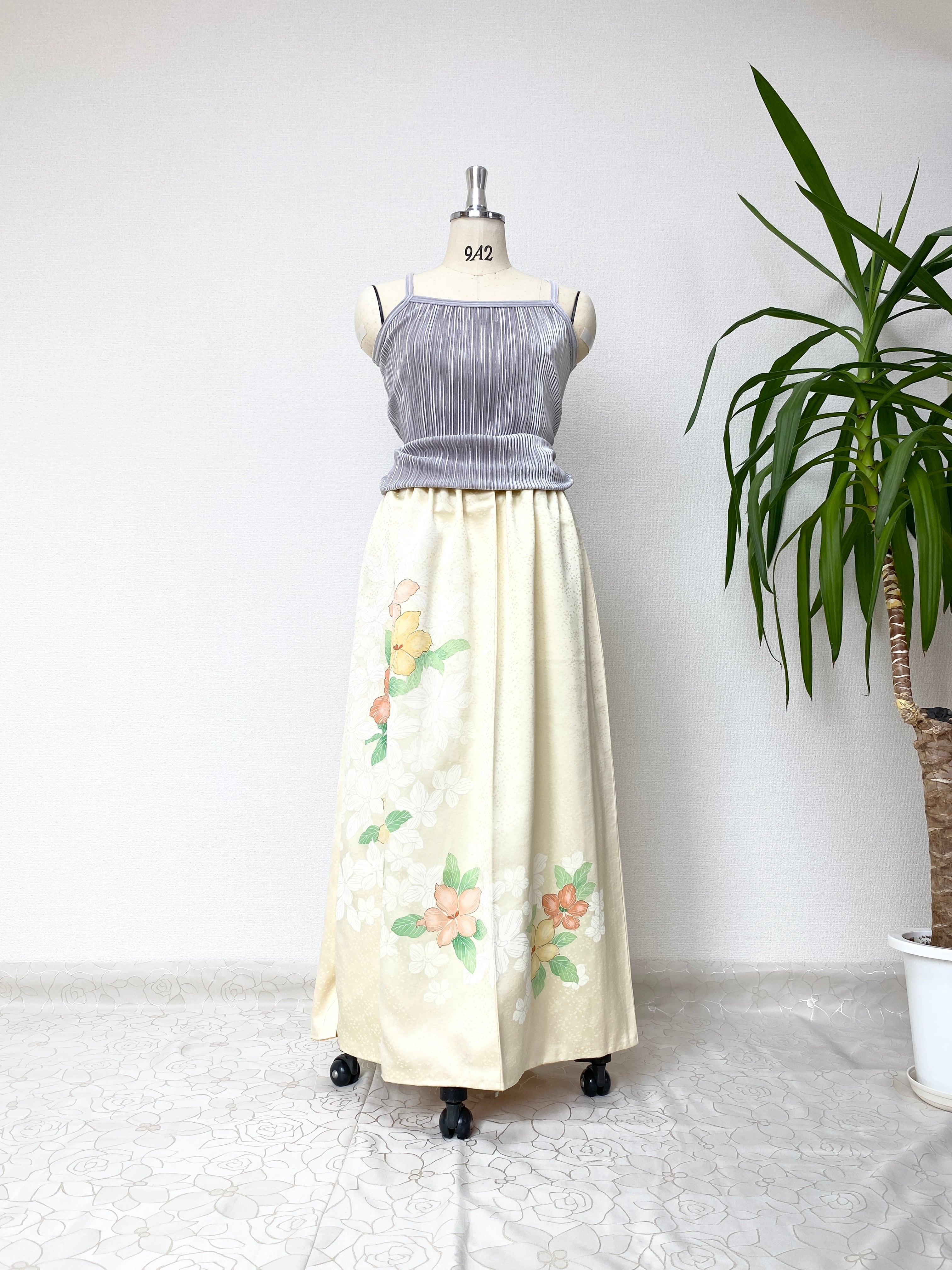 着物リメイクウエストゴムスカート&ストール羽織物セットアップフリーサイズ