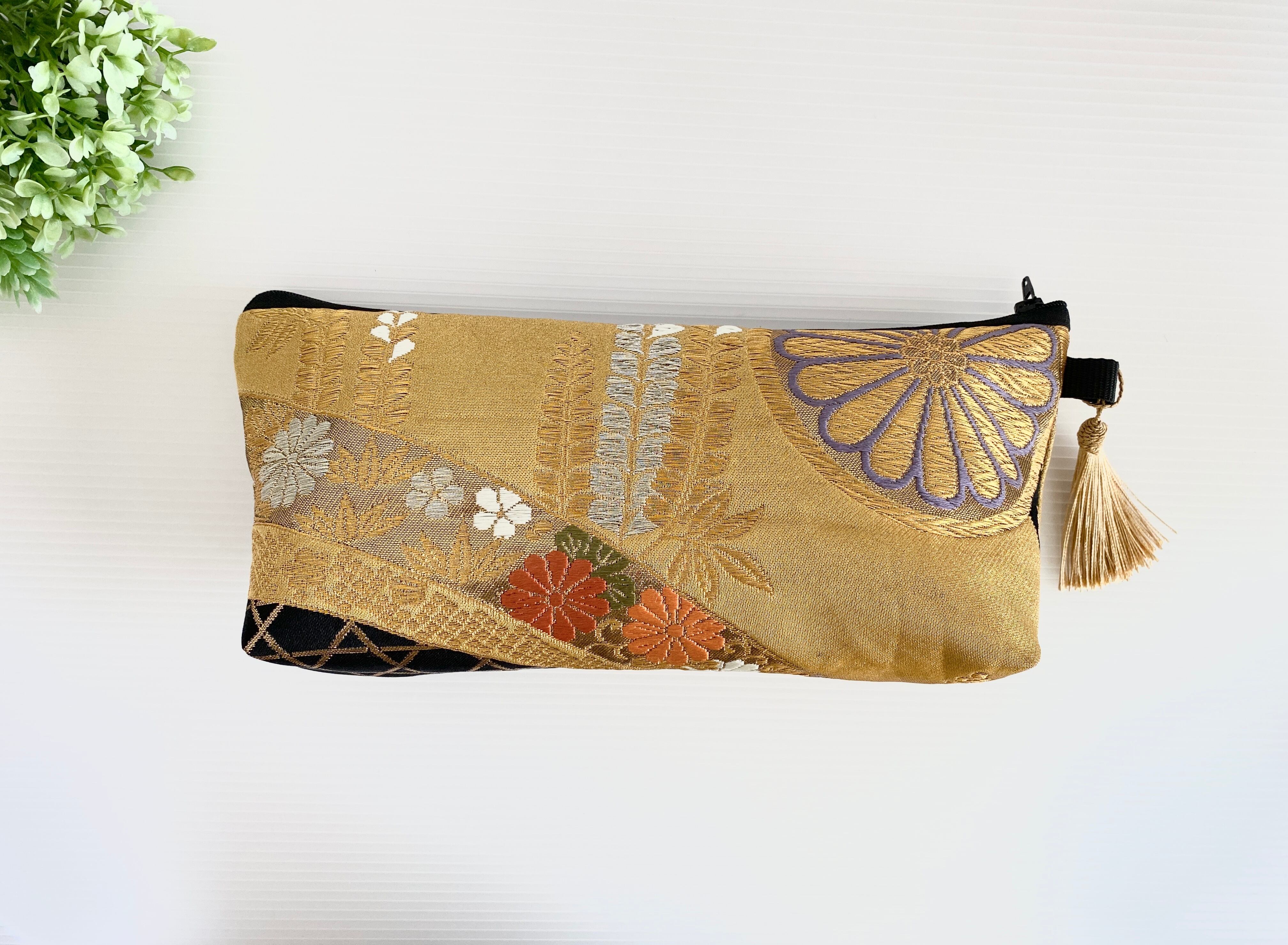 裏生地にも帯を使用しておりますのでしっかりとした造りの帯リメイクポーチ【大きめ】です。